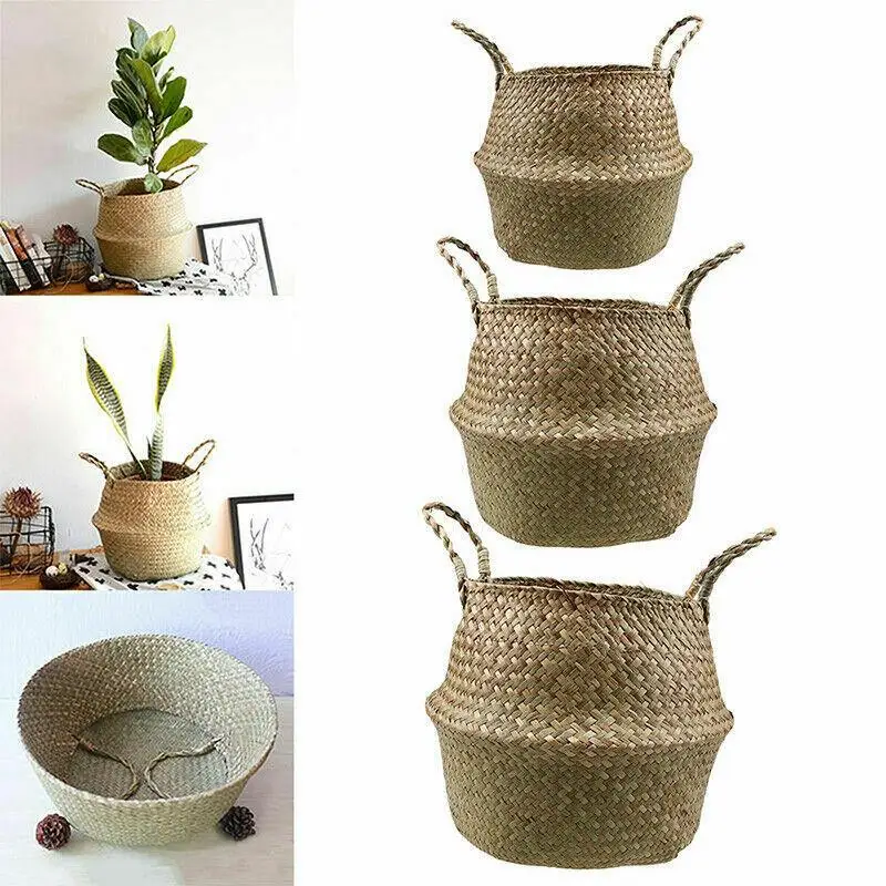 Складная из натуральных водорослей из плетеной соломы, корзина для хранения горшок садовая Цветочная ваза висячая Корзина для пикника, корзина домашнее хранилище корзина Декор
