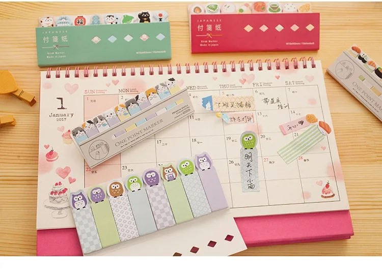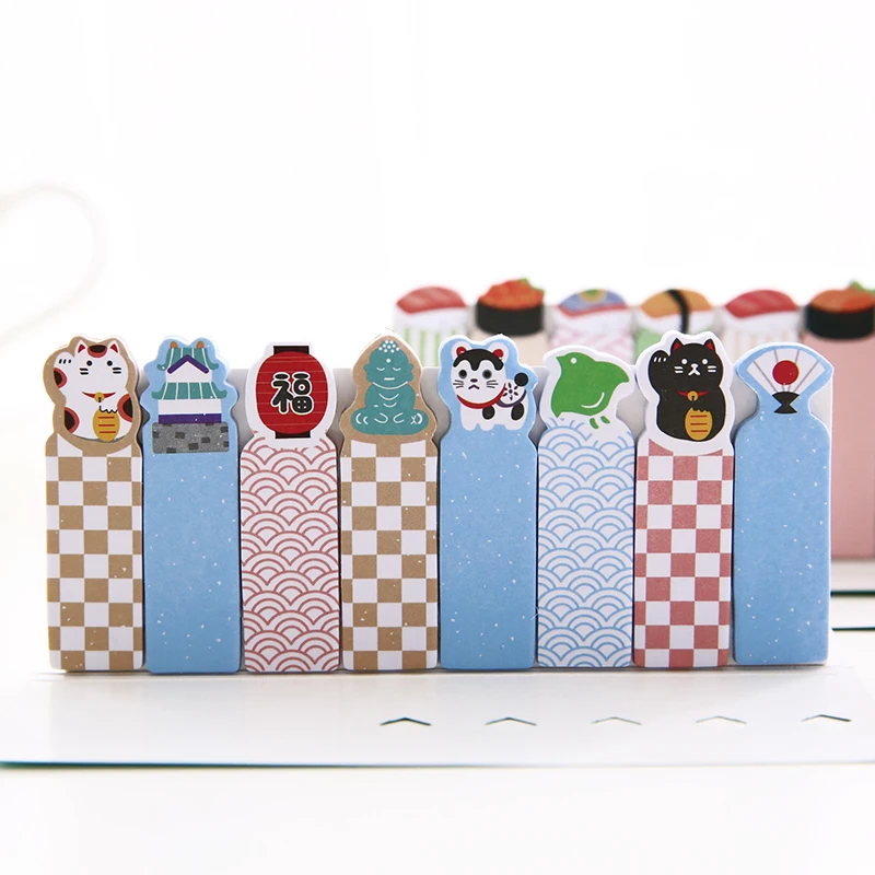 8 шт с принтом героини мультфильма бумаги для заметок на клейкой основе маркер-выделитель пост Блокнот японский Стиль кошка стикеры с суши метка школьные принадлежности F380