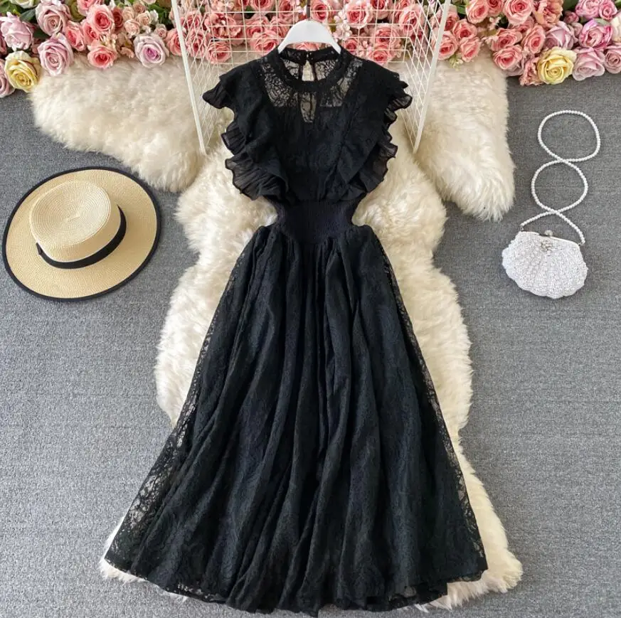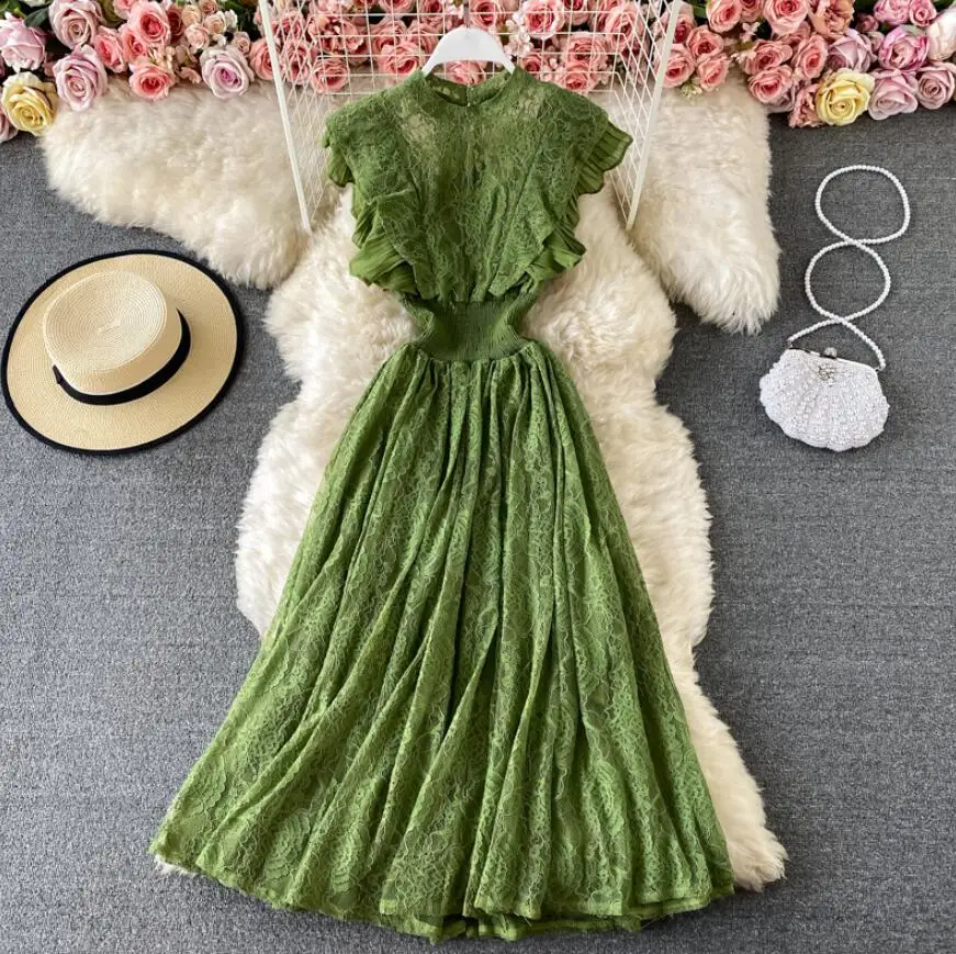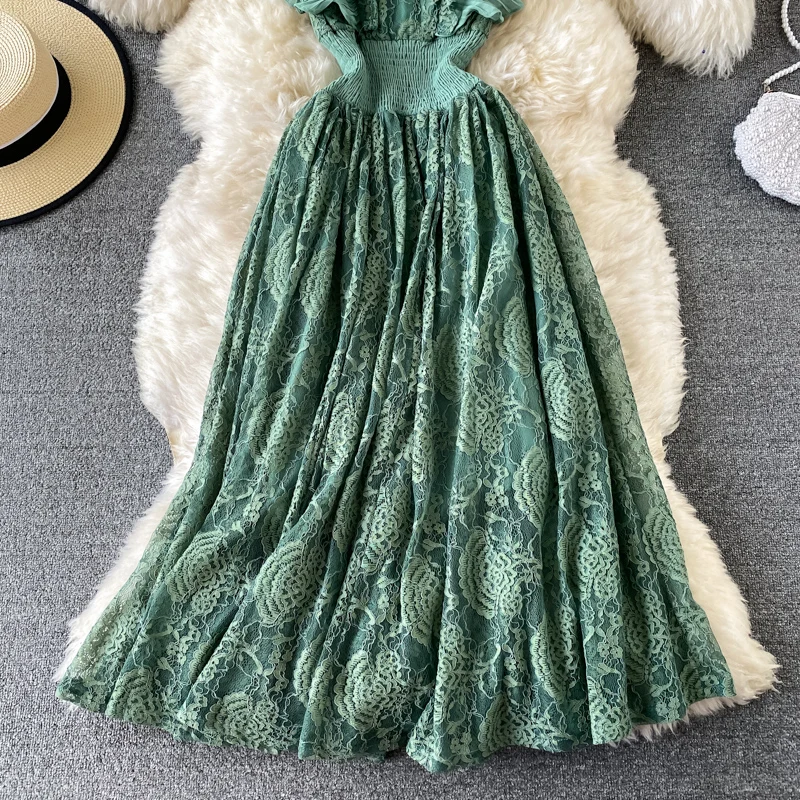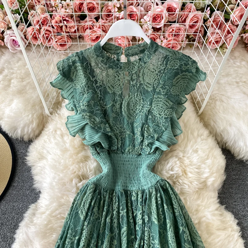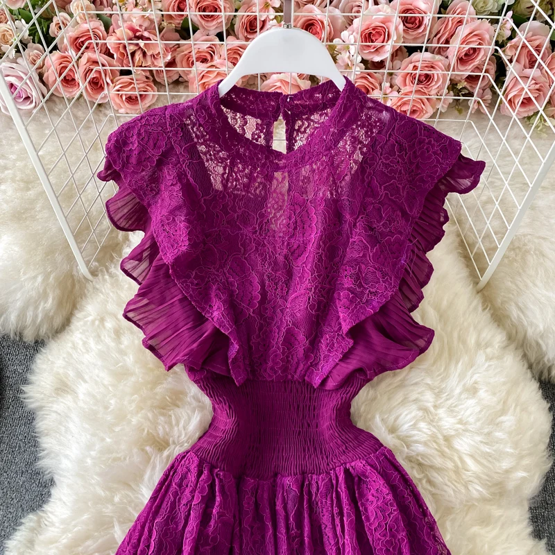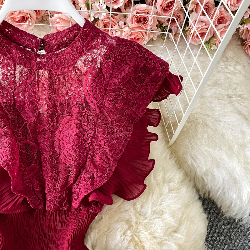 Платье женское кружевное без рукавов, с круглым вырезом и эластичной талией, Элегантное Длинное приталенное вечернее, с оборками, лето 2021