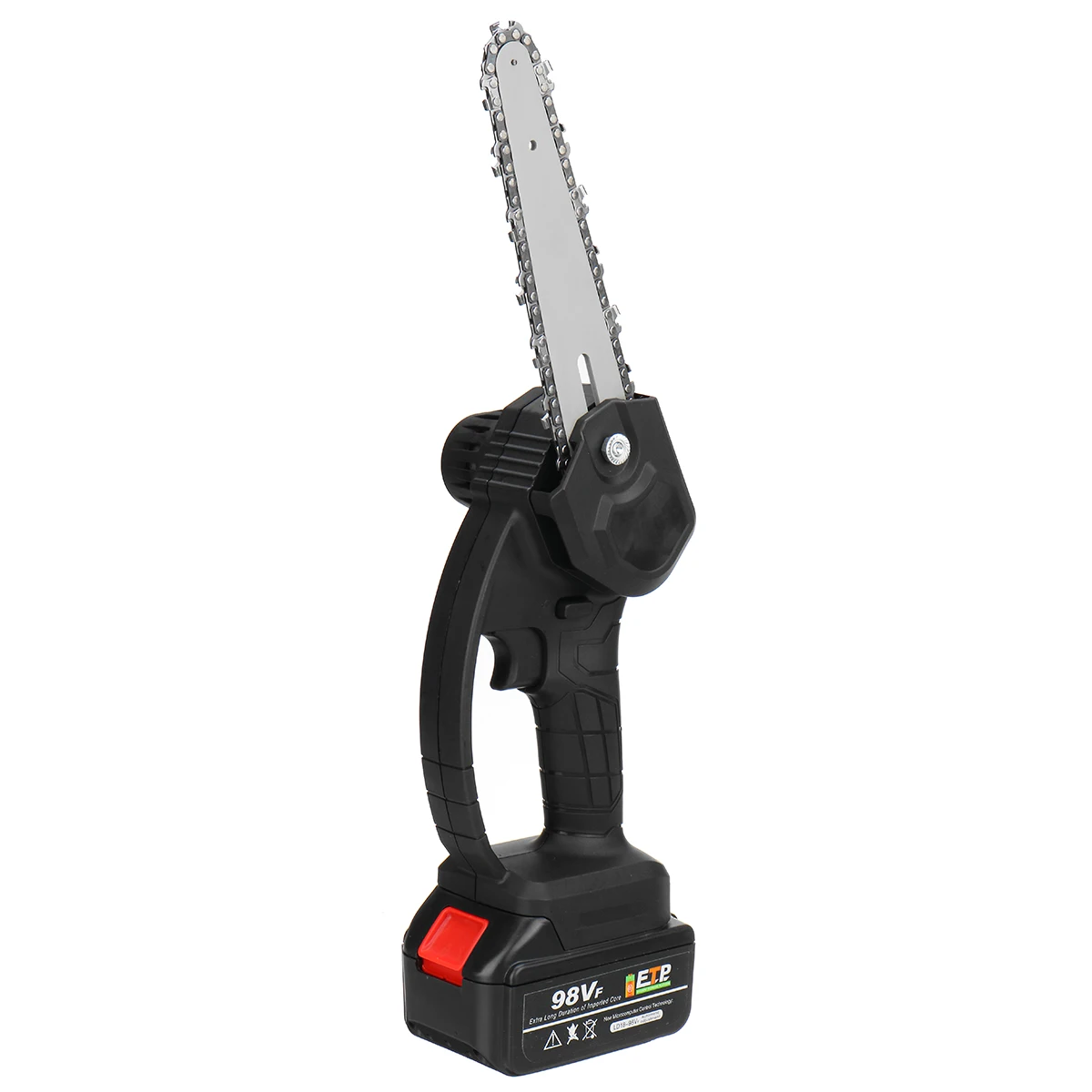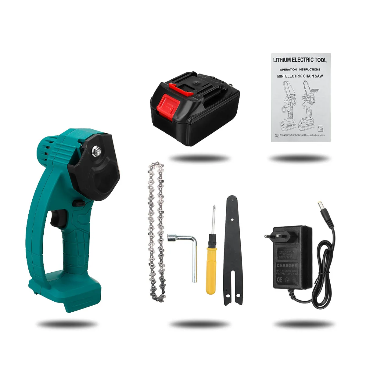 Особенность:-Литиевый аккумулятор большой емкости. Технология литиевого аккумулятора, Защита аккумулятора от перегрузки, быстрая зарядка.-Медный сердечник двигателя. Сильная мощность, быстро собирает энергию, выдает сильную мощность.-Качественная направляющая цепь. Острая и износостойкая, глубокая закалка более износостойкая и ровная резка.-Эргономичная ручка, которая очень удобна и безопасна для переноски.-Ручка имеет противоскользящую конструкцию, которую очень удобно захватывать.-Безопасность пиления, эффективно повышают эффективность вашей работы.-Бесконечно переменная скорость, более детальная обрезка, лучшая защита деревьев.