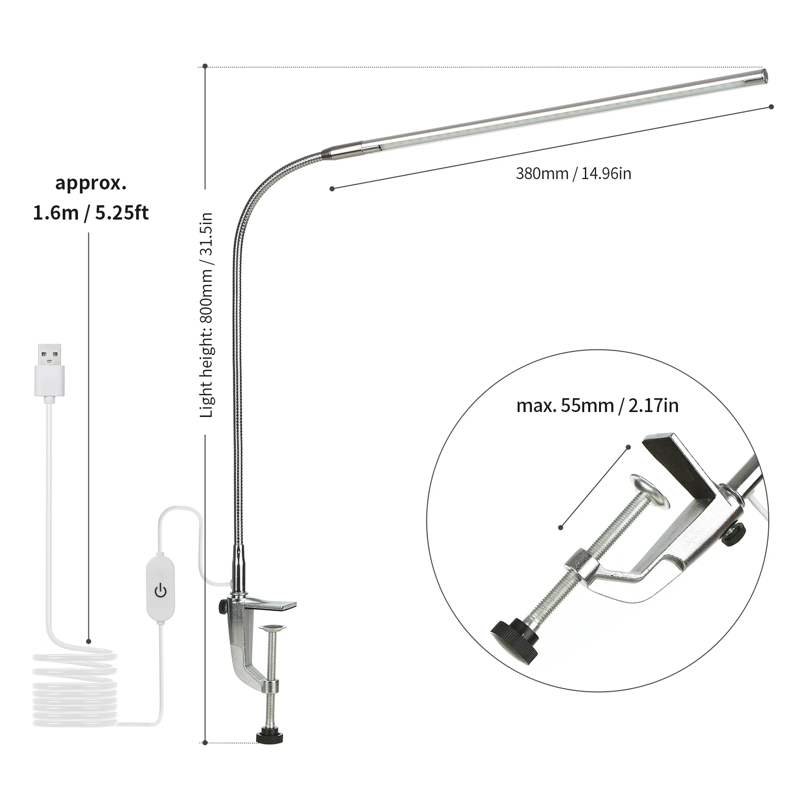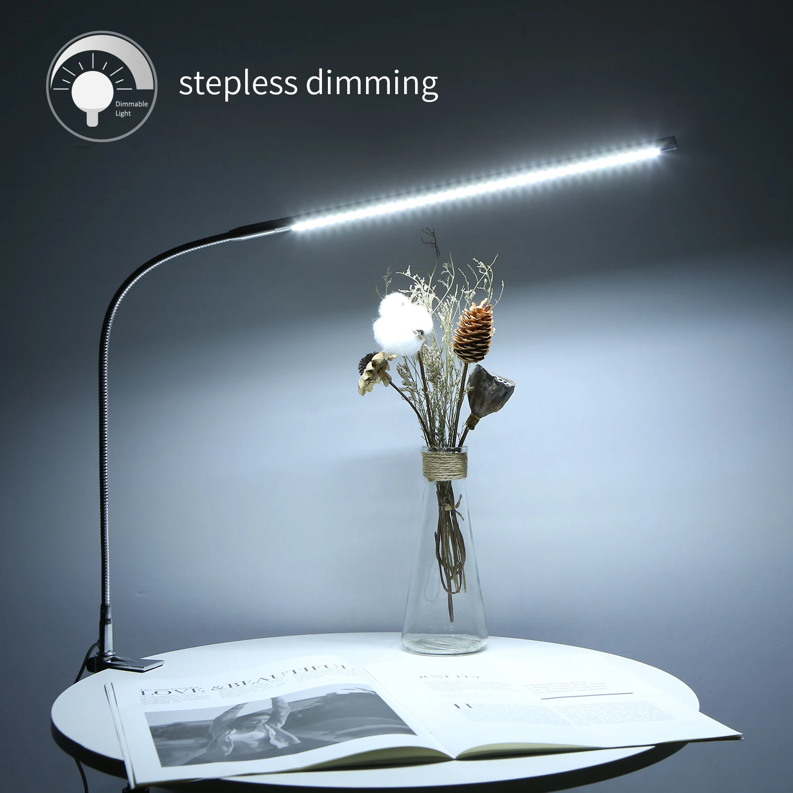 Настольная лампа на прищепке, 10 Вт, светодиоды, светильник, сенсорное управление, диммируемая светодиодсветильник ПА для чтения, для изголовья кровати, офиса, верстака