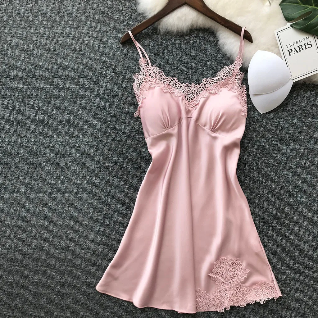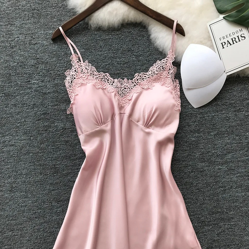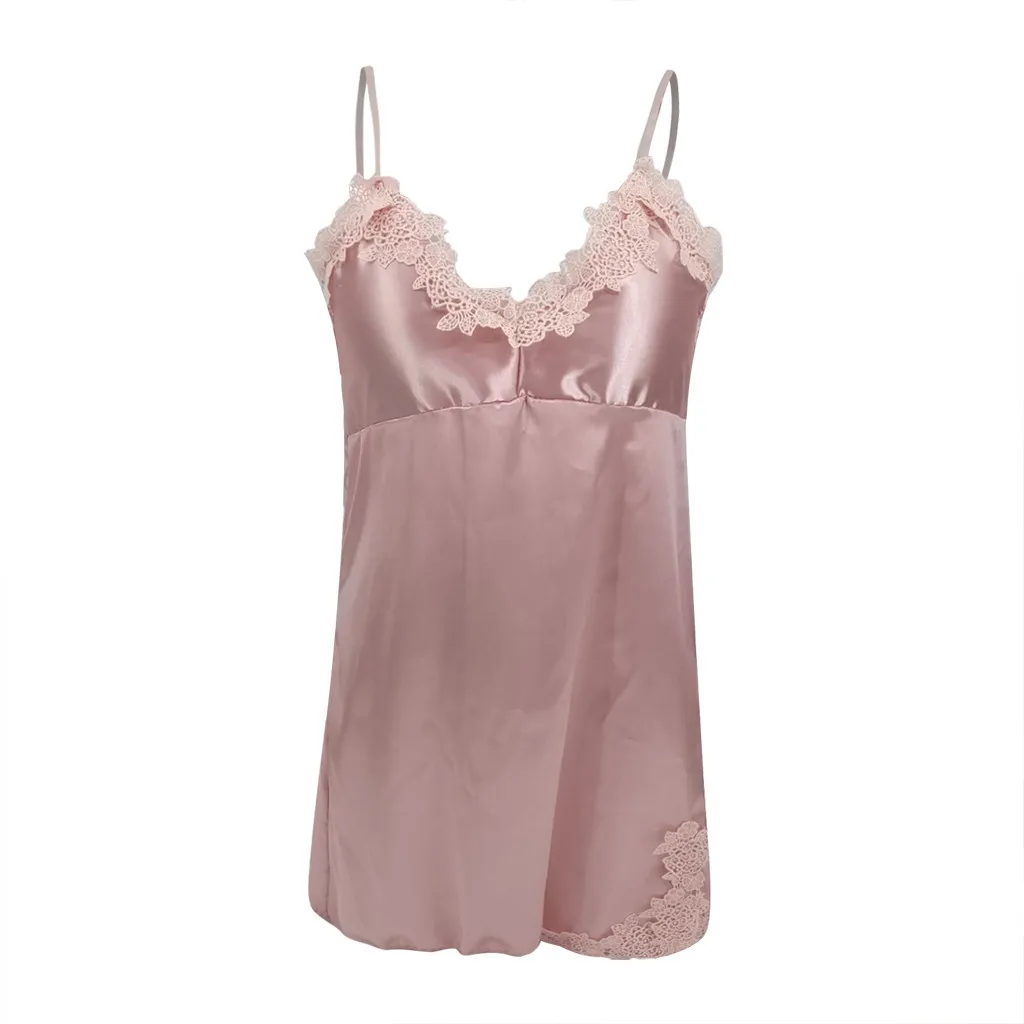 KANCOOLD женская пижама женская сексуальная однотонная с V-образным вырезом и кружевными вставками на бретельках нижнее белье халат ночная рубашка Jun2