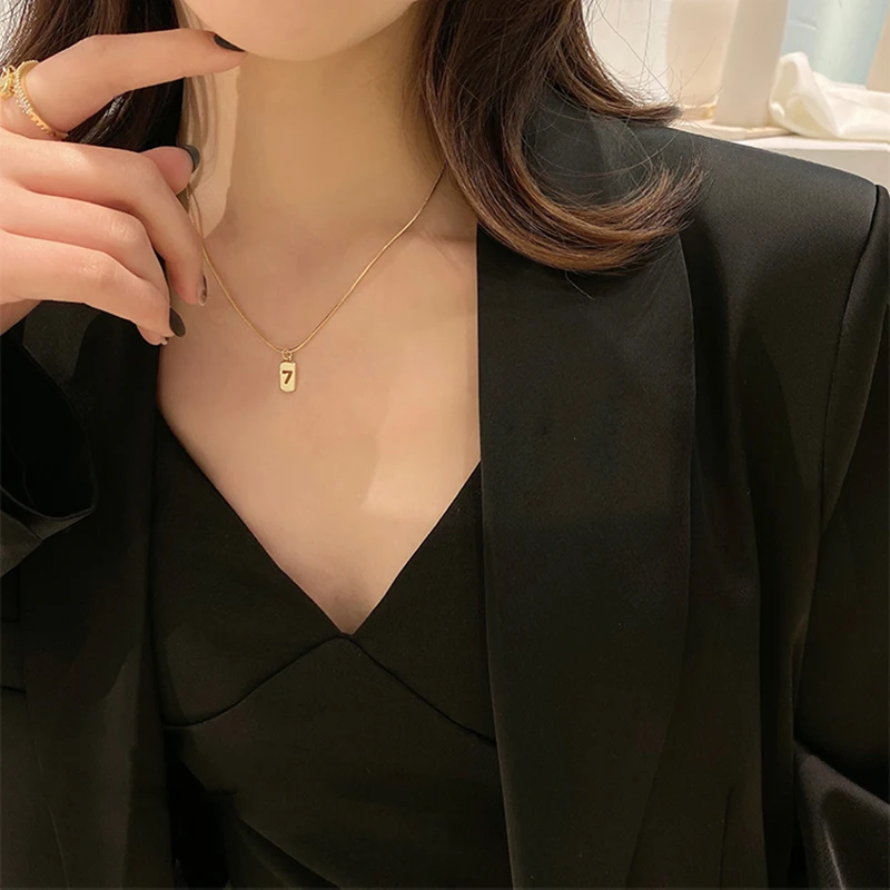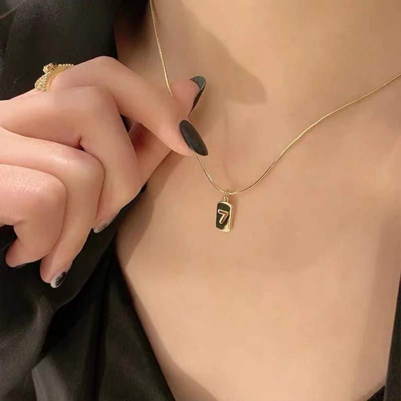 Ожерелье под воротник с подвеской-номером 7 женское, классическое модное ожерелье золотистого цвета с цифровым изящным кулоном в Корейском стиле, бижутерия