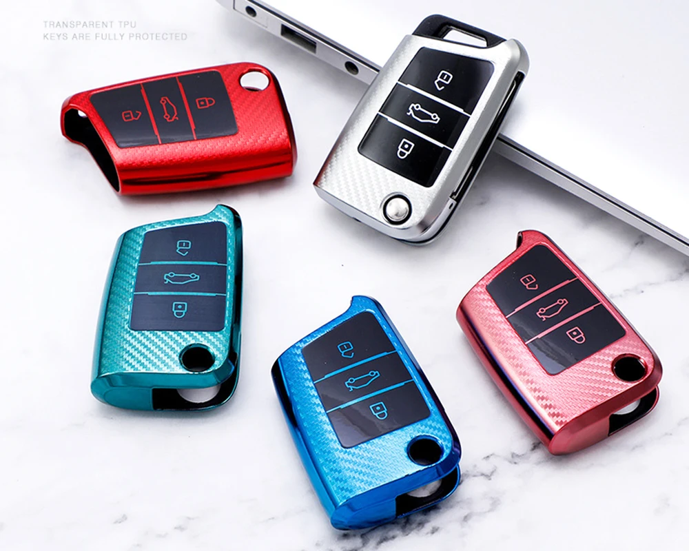 Чехол для автомобильного ключа из углеродного волокна, ТПУ, для Vw ...