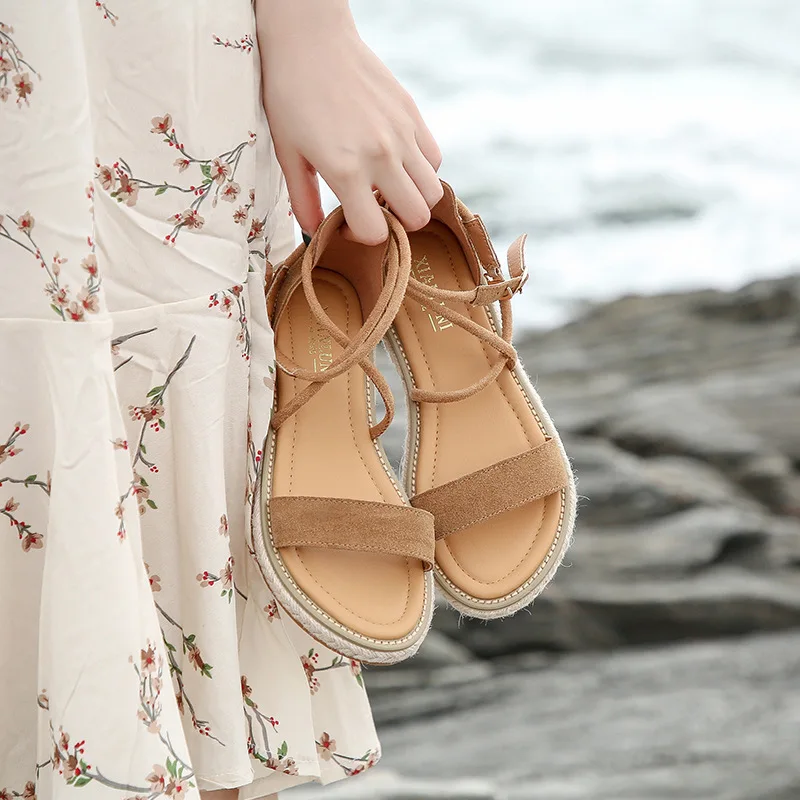 Женские сандалии из искусственной замши, на шнуровке, Размеры 35-42