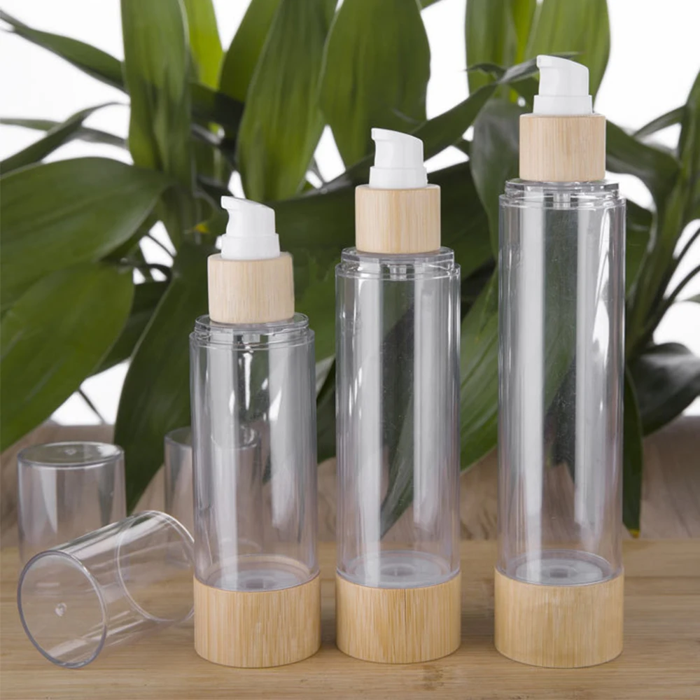 Новое поступление, пустой безвоздушный бамбуковый крем с насосом 20-120 мл для лосьона из пены, косметика для ухода за кожей многоразового использования для женщин