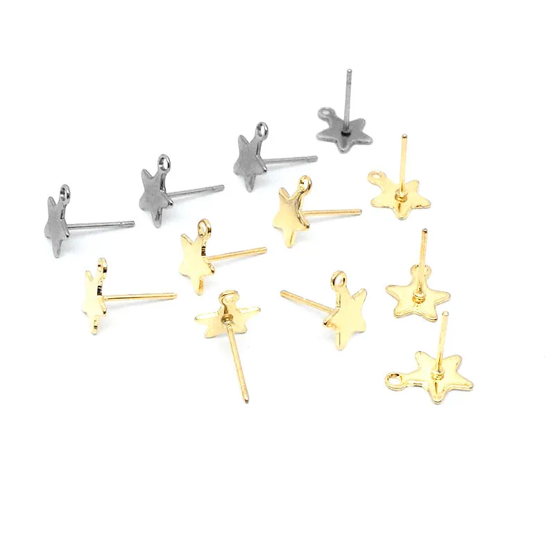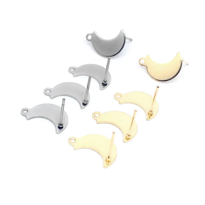 10 шт.лот 316L из нержавеющей стали золотого цвета с рисунком Луна, Звезды круглые серьги стержня столба с петлей для DIY серьги ювелирных изделий Ремесла