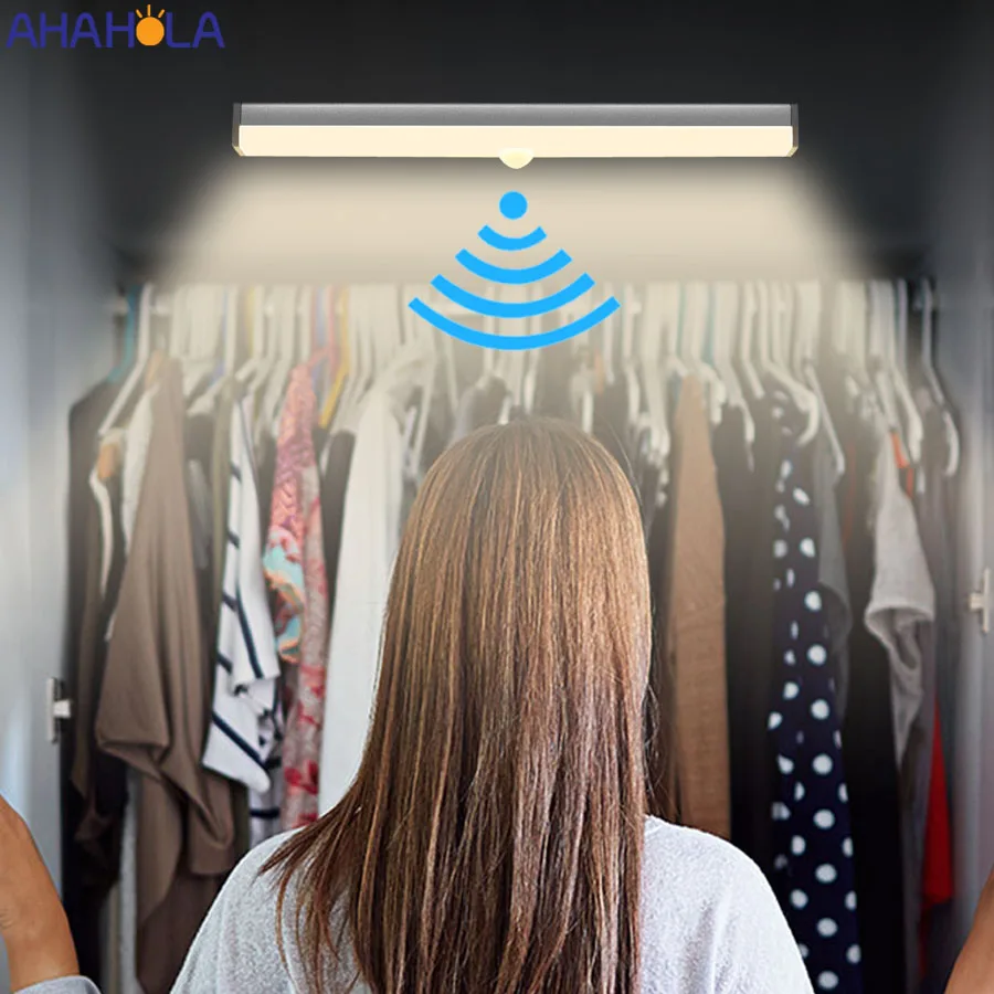 Светодиодный светильник для шкафа движения Сенсор шкаф Кухня 5v под светом шкафа Магнитная Ночной светодиодные светильники с движения Сенсор