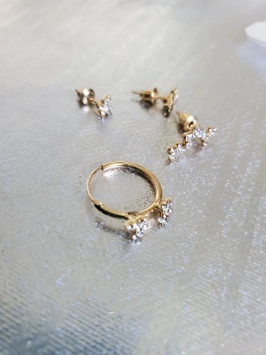 Earrings weren't even the same as in the picture/on the model. The hoop earring backing is horrible quality, probably can't even wear it because it'll just fall out. They gave me 2 butterfly studs instead of the butterfly cuff as shown.