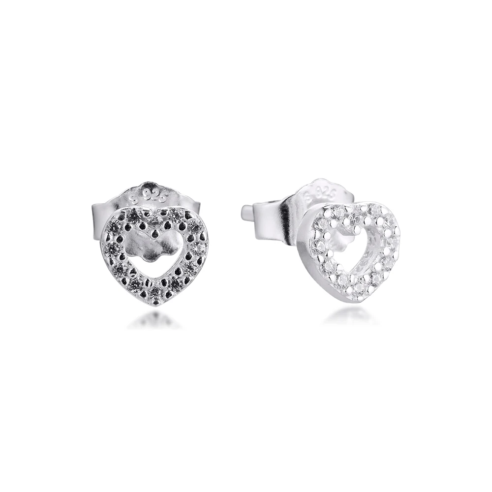 Оригинальный 925 стерлингового серебра серьги-гвоздики для женщин сверкающие серьги в форме сердца женские ювелирные изделия вечерние подарок brincos, можно носить с berloques