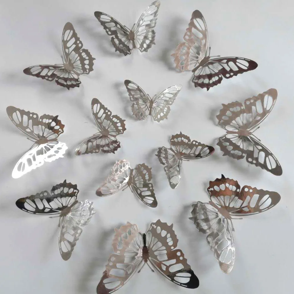 12 шт./лот 3D пустотелые золотые серебряные бабочки настенные наклейки художественные украшения для дома настенные наклейки для вечерние свадебные витрины бабочки