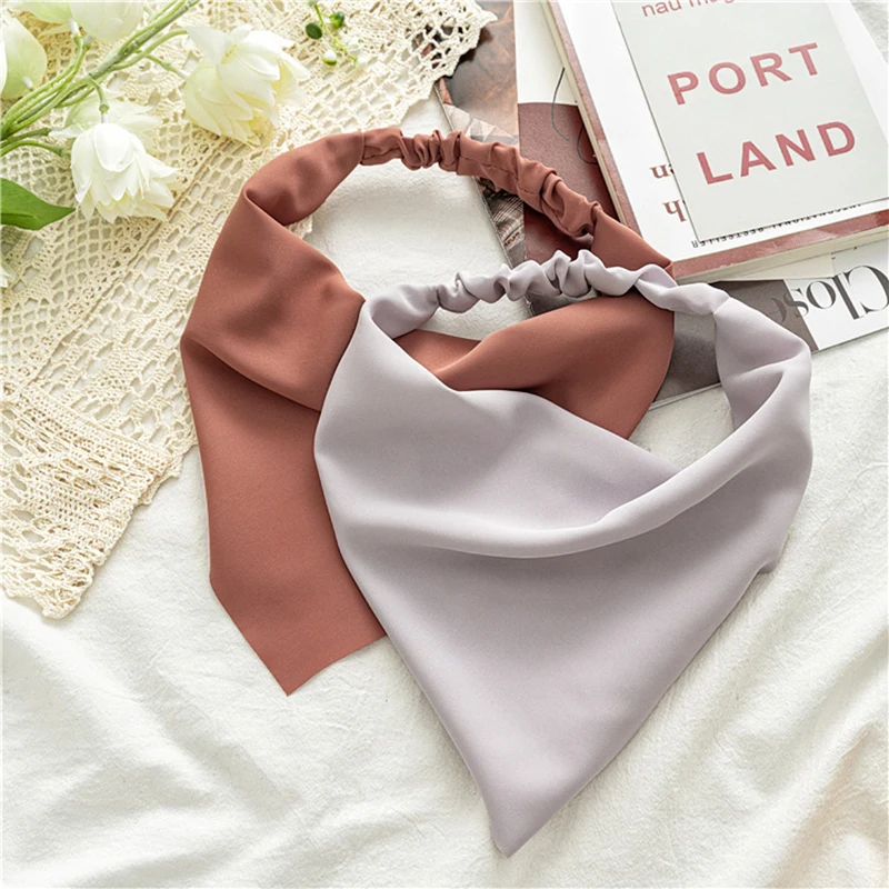 2021 Новый однотонный шарф для волос повязка на голову эластичные треугольные банданы самодельный тюрбан шифоновая повязка для волос для женщин и девочек аксессуары для волос