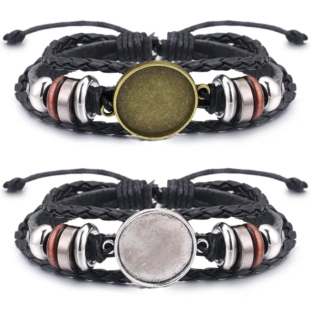 Античный кожаный браслет Пустой Базы подходит 20 мм круглый фото стекло Кабошон рамка лоток DIY расходных материалов для изготовления ювелирных изделий