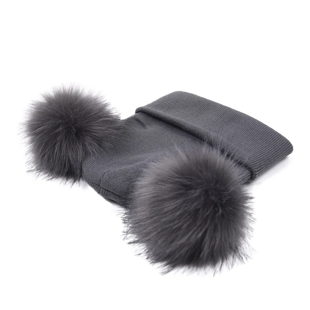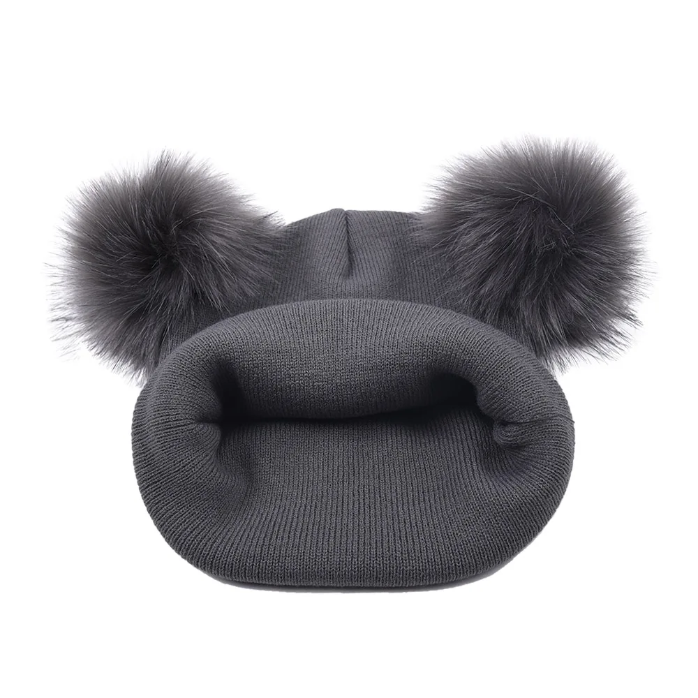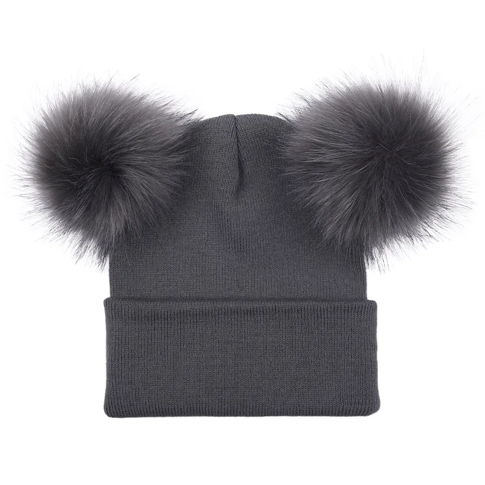 Шапка-бини WZCX с двойным помпоном, однотонная, сохраняющая тепло, для улицы, унисекс, Женская эластичная зимняя шапка с помпоном, вязаная шапка