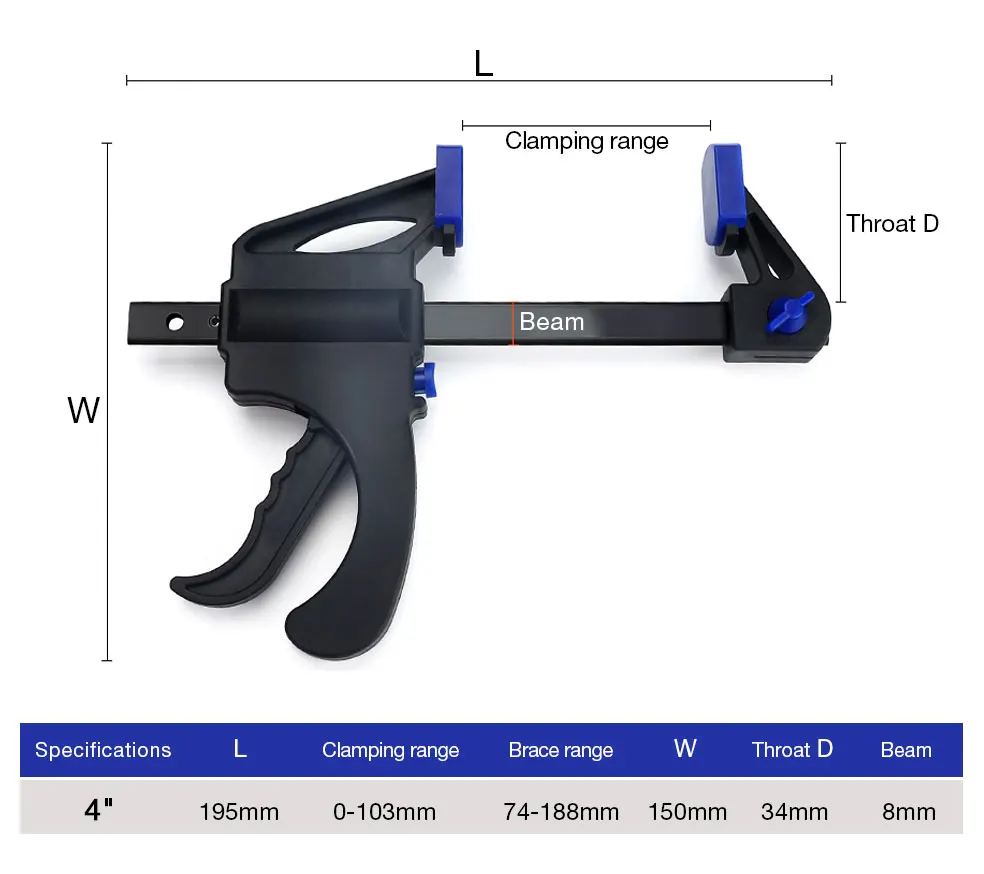 1. Продукт: F зажим для обработки дерева2. Материал: пластик3. Цвет: черный и оранжевый