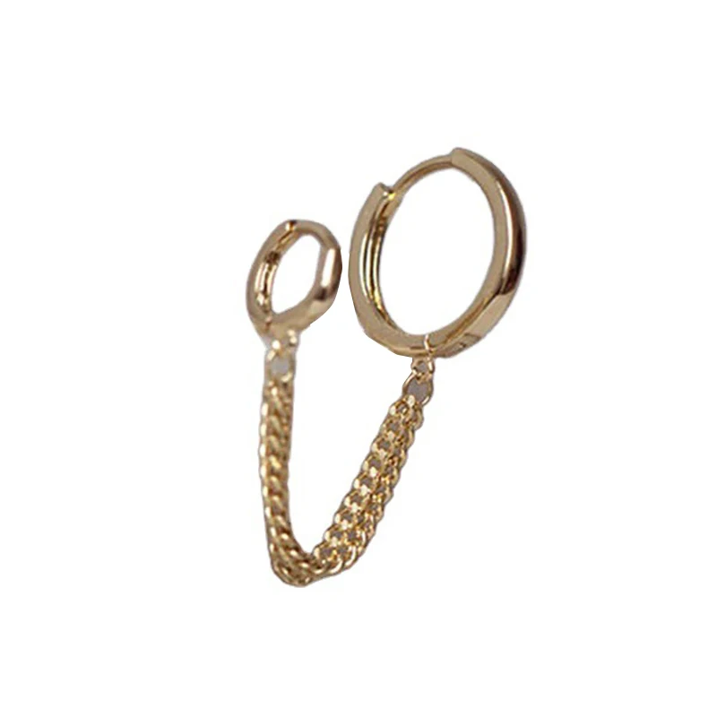 Серьги-клипсы женские двойные металлические, модные ювелирные украшения для ушей простой индивидуальности, цепочка с пряжкой, 1 шт.