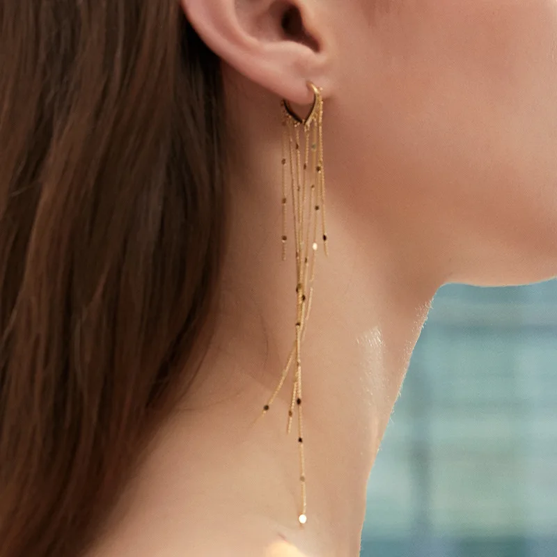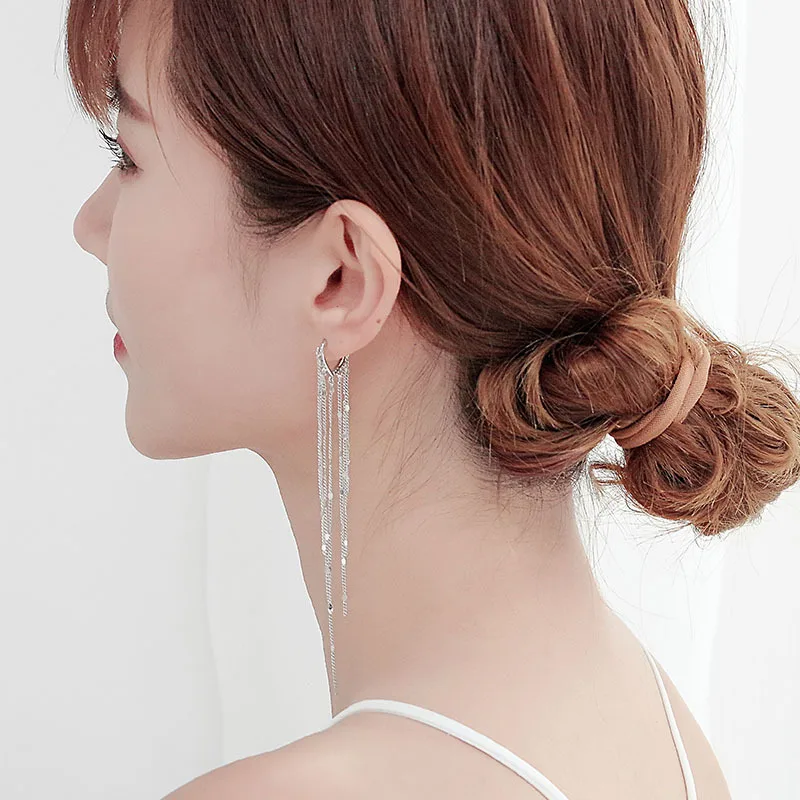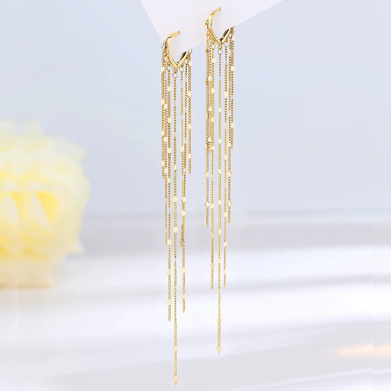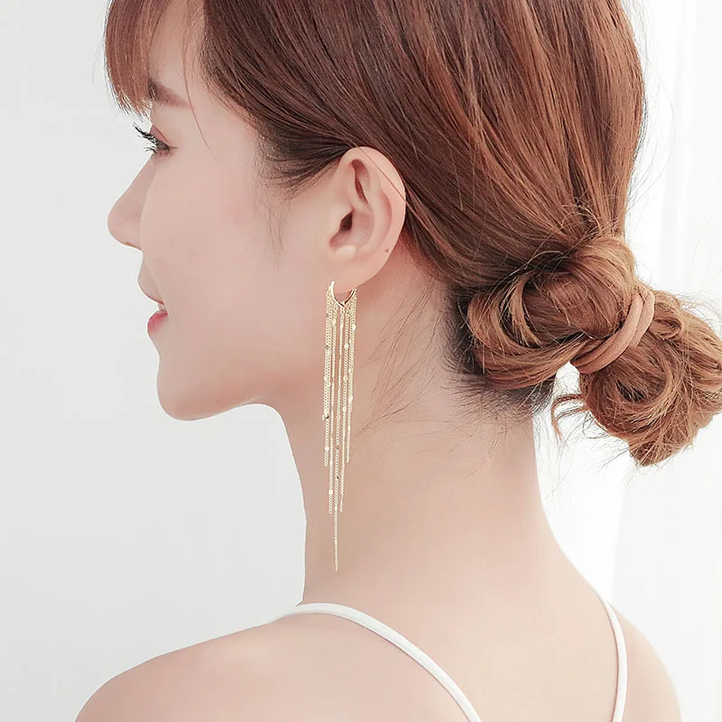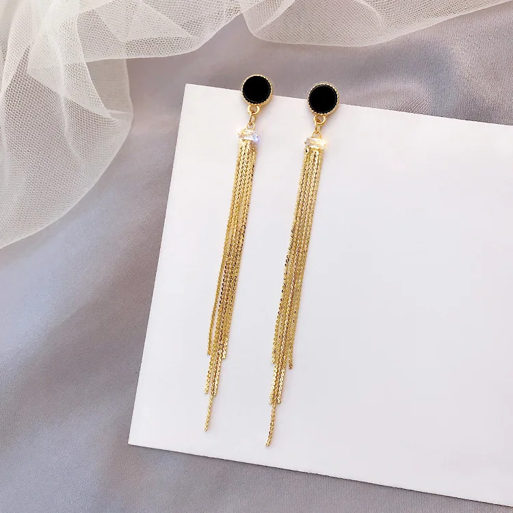 Корейские Металлические длинные серьги с кисточками, универсальные, милые и элегантные женские серьги, ювелирные изделия