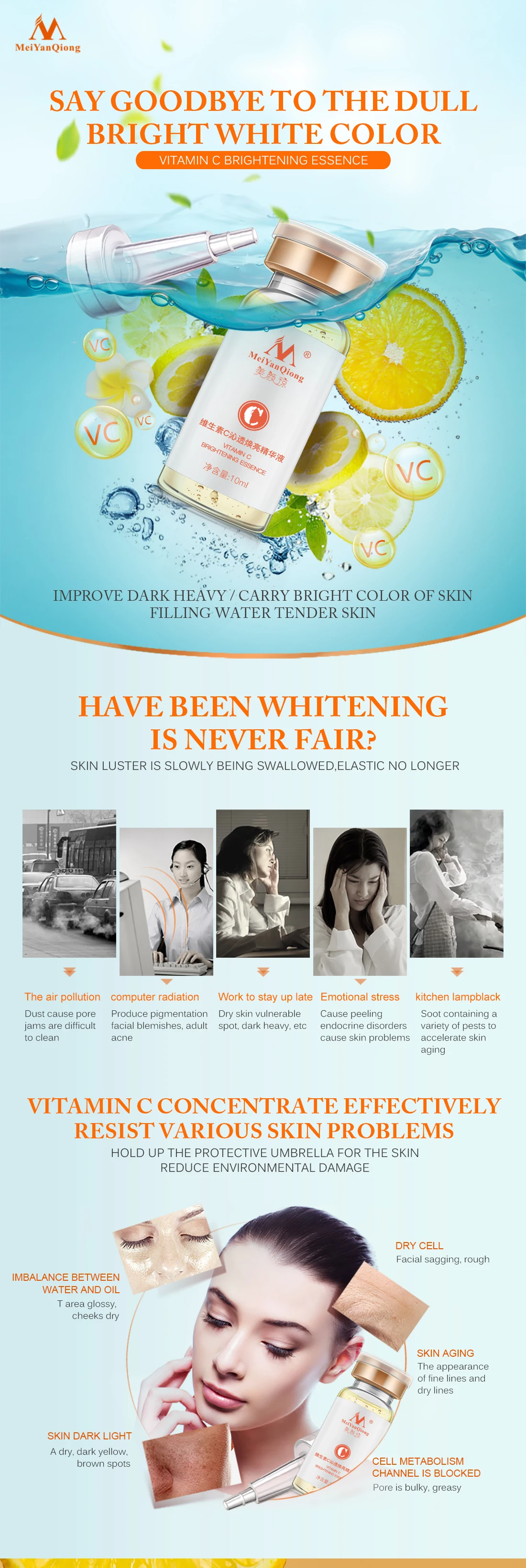 Особенно добавляется витамин С, осветляющая эссенция кожи, с мягкой и влажной текстурой, она может обеспечить богатую влагу и питание, чтобы увлажнить кожу, питая, что поможет улучшить тусклую и осветлить кожу, восстанавливает нежную, пухлую и яркую кожу.