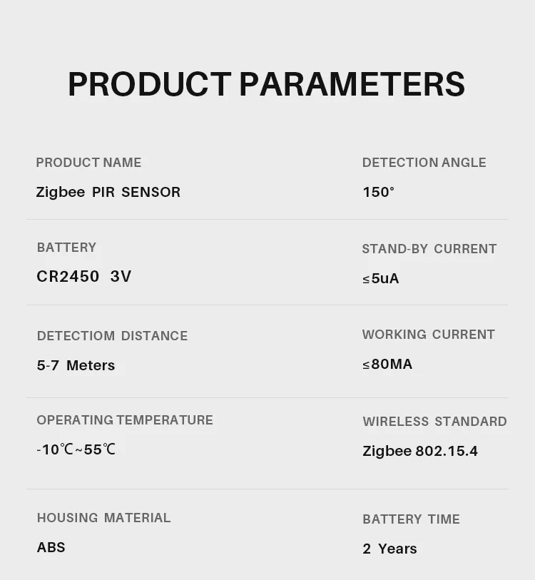 Может использоваться с различными продуктами серии ZigbeeРазличные уровни систем домашней безопасности.Мобильное приложение может проверить статус в любое время и в любом месте.
