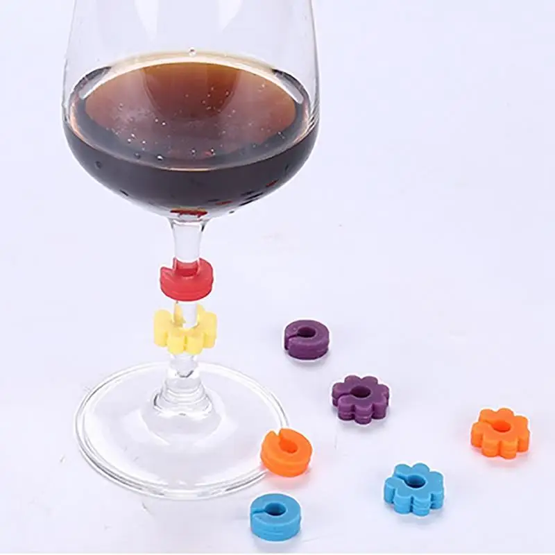 12 шт. подвески для Винных Бокалов, силиконовые однотонные маркеры для напитков в форме цветка, идентификационные этикетки для стаканов, ярлыки, знаки для вечерние