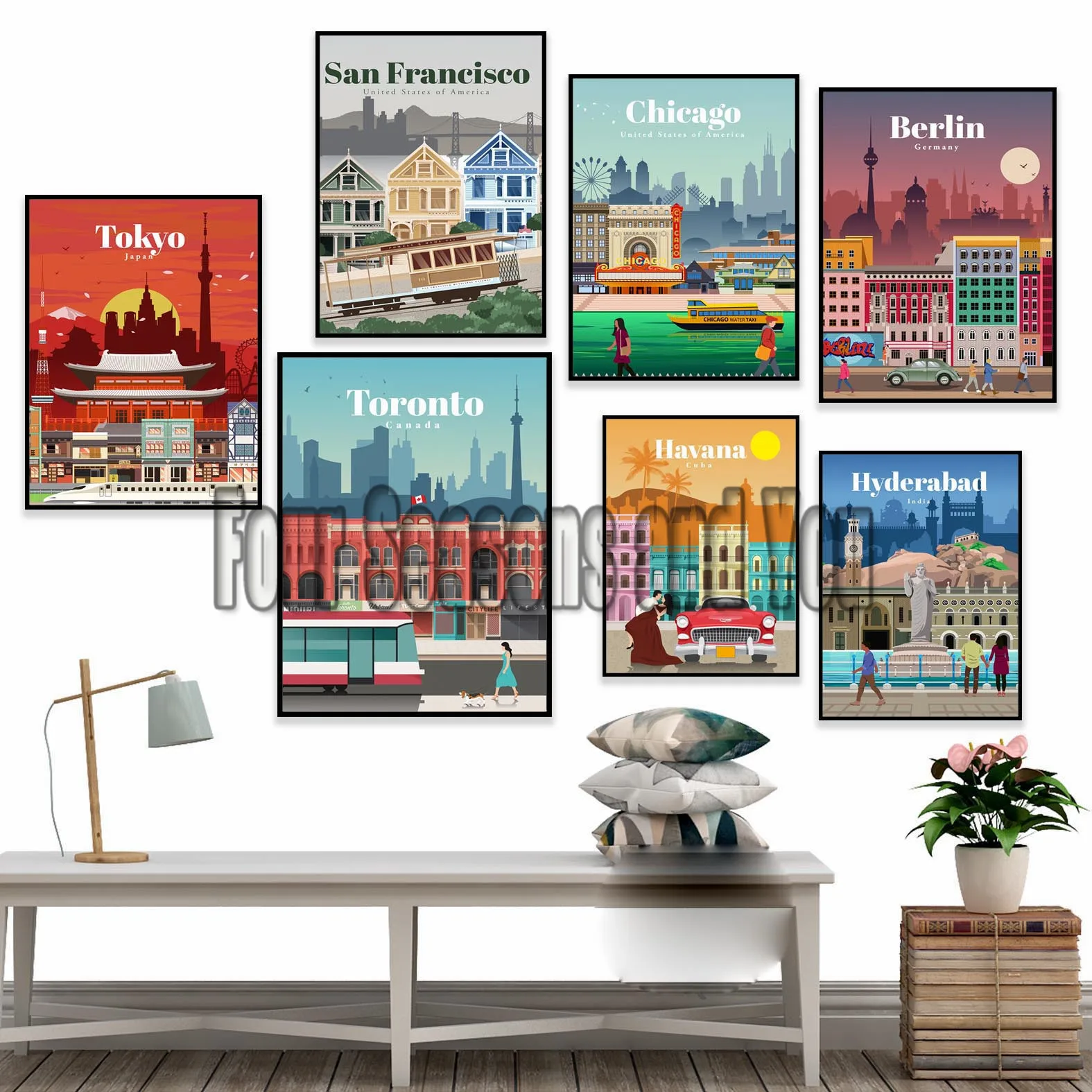 Набор из 3 предметов: картина с изображением заката дерева, совреме...