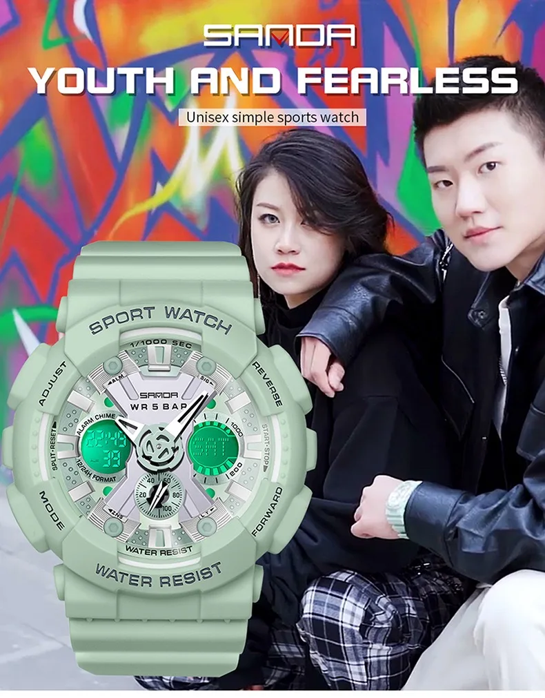 Часы наручные SANDA мужскиеженские, водонепроницаемые до 50 м, спор...