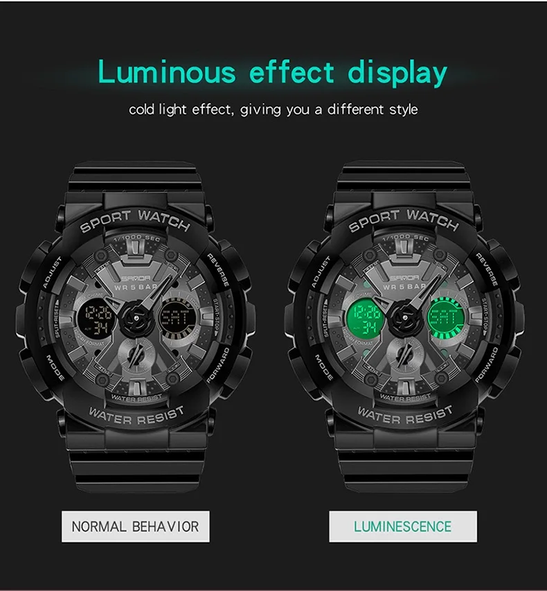 Часы наручные SANDA мужские с хронографом, спортивные многофункциональные водонепроницаемые цифровые с будильником, 5 бар