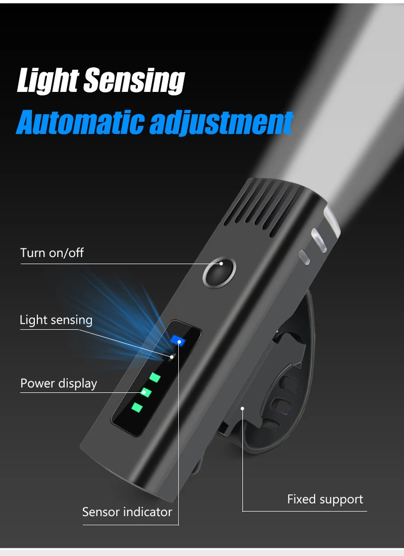 4000mAh Индукционная передняя фара велосипеда USB перезаряжаемая умная фара с рогом...