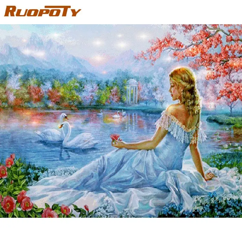 RUOPOTY 5D алмазная живопись, вышивка крестиком, женщина, полностью квадратная Алмазная вышивка, украшение для дома, распродажа, морской пейзаж, сделай сам, подарок