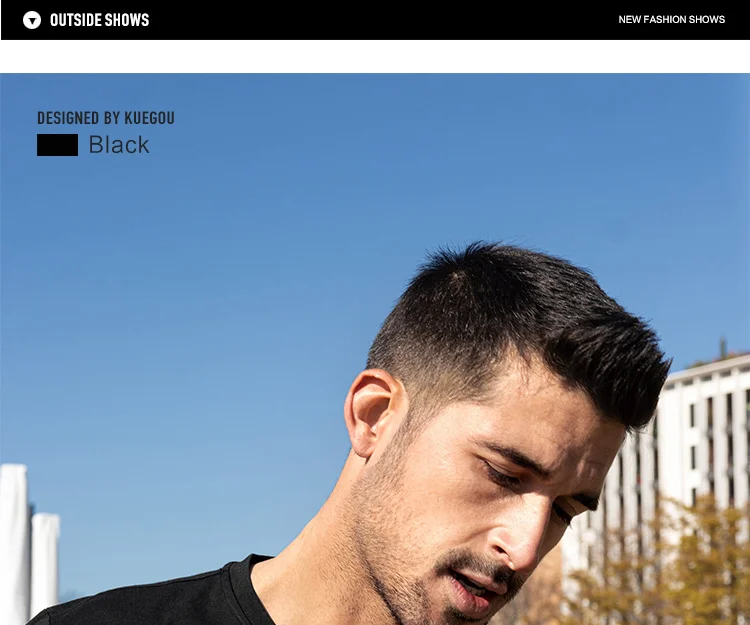 Мужской облегающий пуловер KUEGOU, черный однотонный Повседневный т...