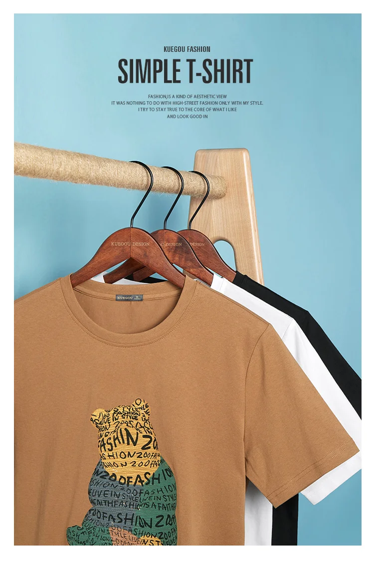 Мужская хлопковая футболка KUEGOU, летняя футболка с коротким рукав...