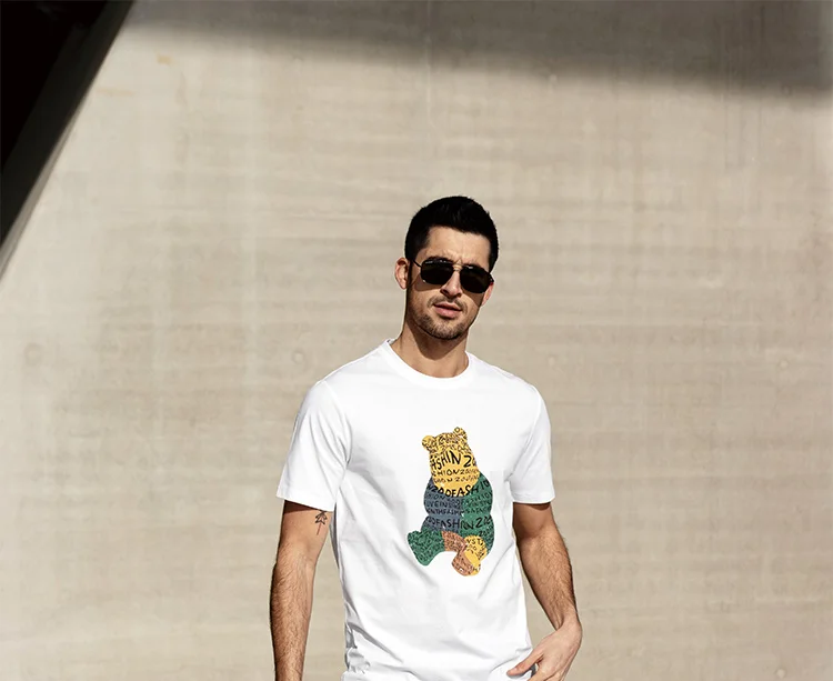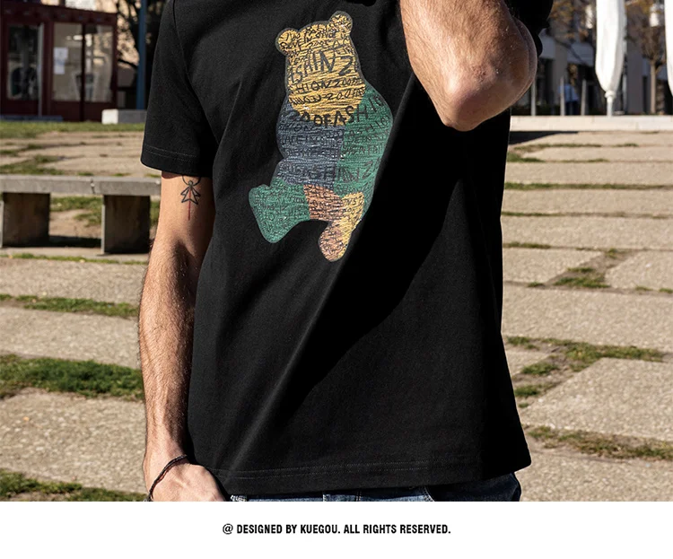 Мужская футболка KUEGOU, с коротким рукавом, с изображением медведя Винни-Пуха, лето 10895