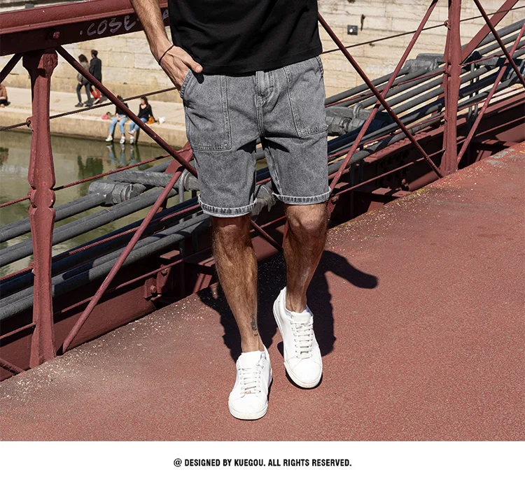KUEGOU хлопчатобумажная одежда мужские рубашки стильное джинсовое п...