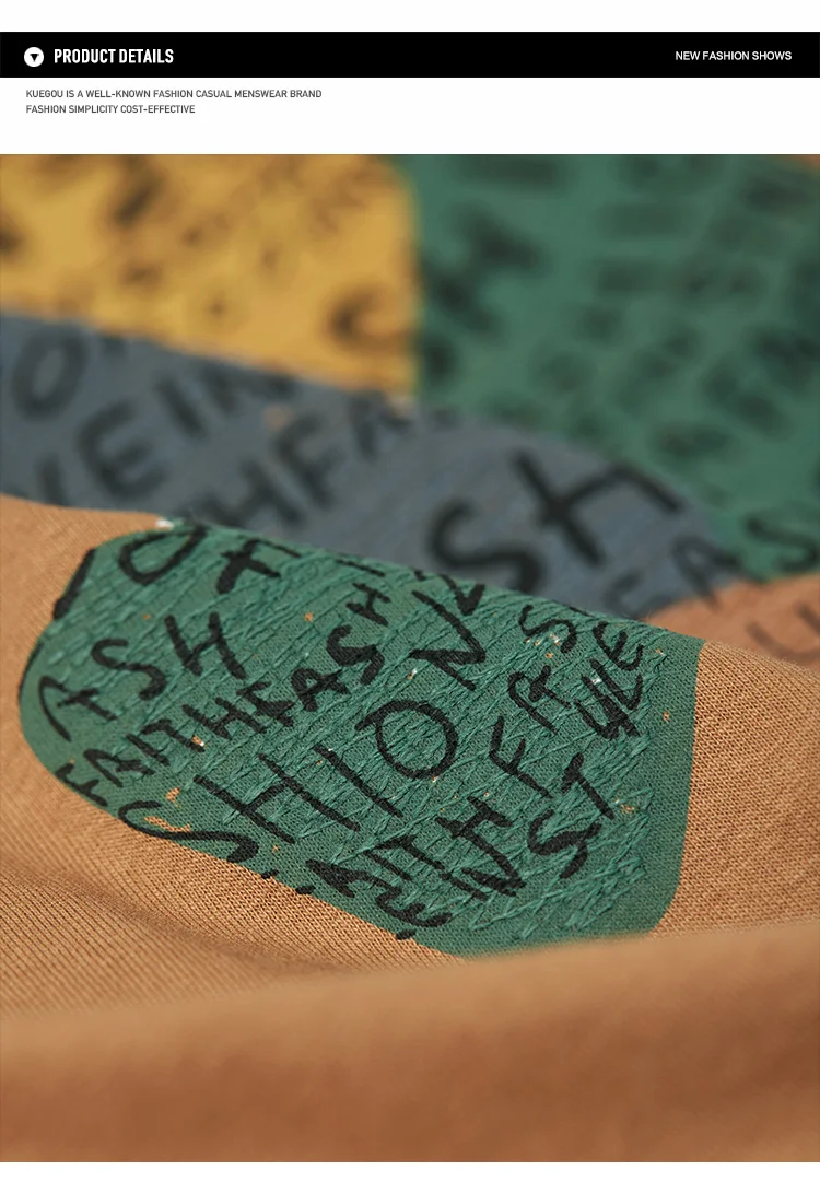 Футболка KUEGOU мужская с принтом, тенниска из 100% хлопка с коротк...