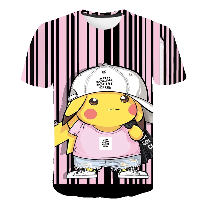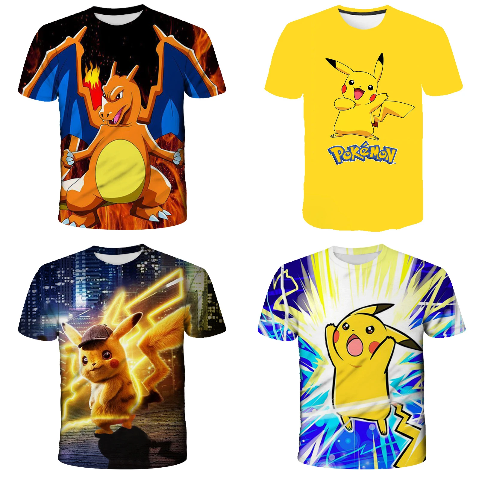 POP 3D с принтом Детские футболки с персонажами из аниме Пикачу, с короткими рукавами, костюм с персонажами манга классная забавная Kawaii милые футболки в стиле Харадзюку; Повседневная футболка