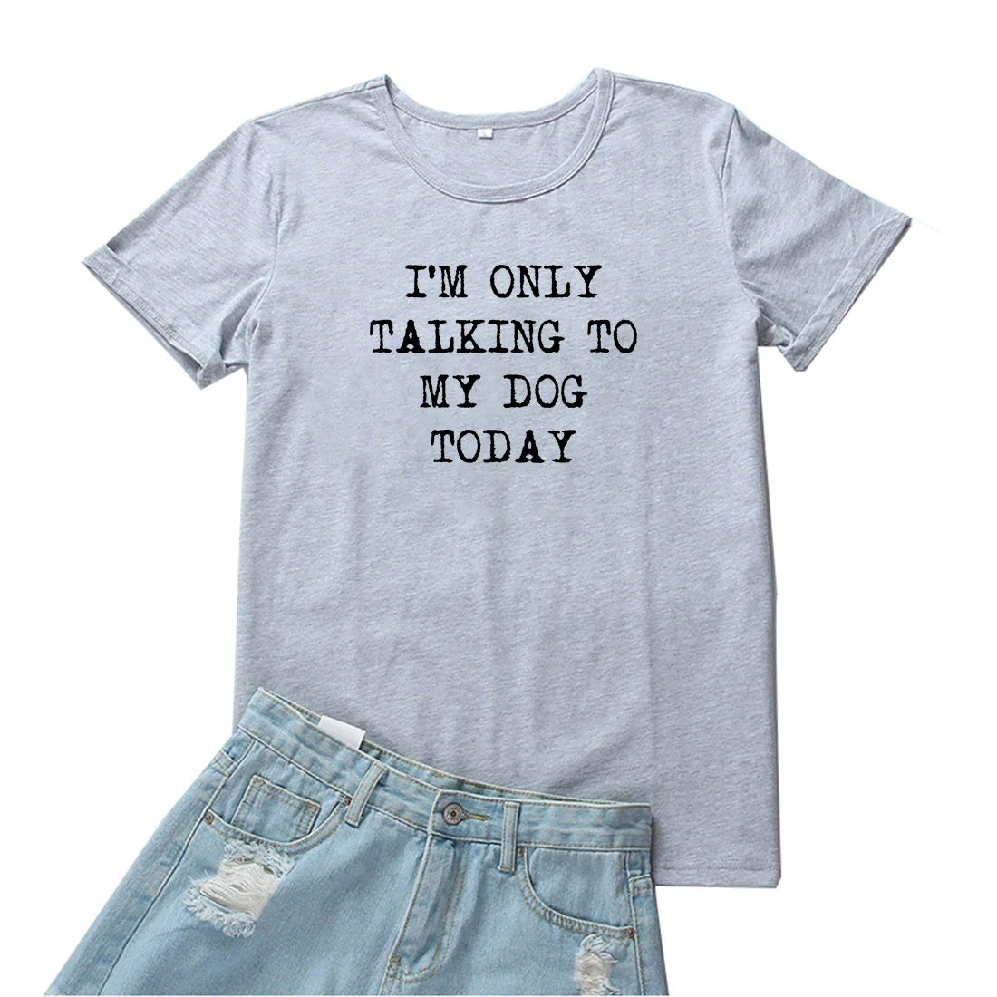 Футболка женская с забавным принтом Я только разговариваю с собакой сегодня, хлопковая индивидуализированная рубашка с круглым вырезом, Топ для женщин