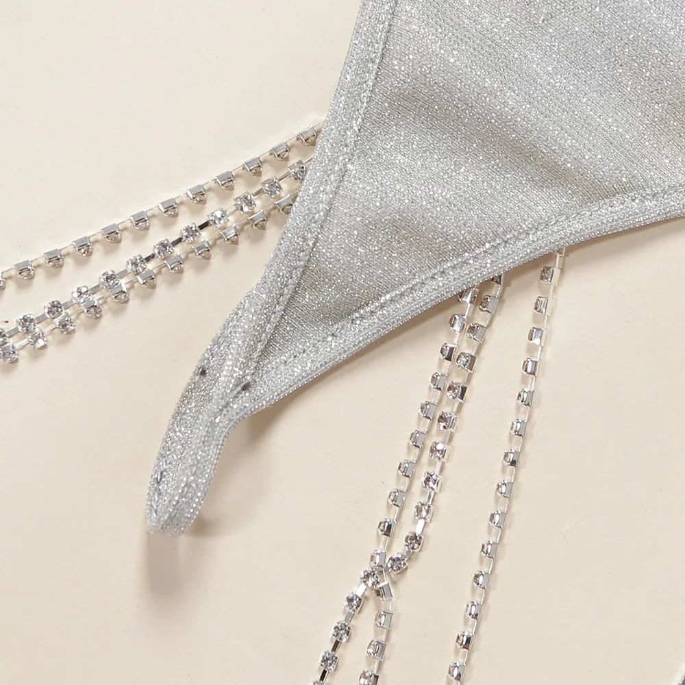 Женский комплект нижнего белья в стиле панк, стразы, бюстгальтер с цепочкой, блестящий Женский комплект нижнего белья с пуш-ап, бюстгальтер на косточках, стринги и бра, комплект женского бюстгальтера