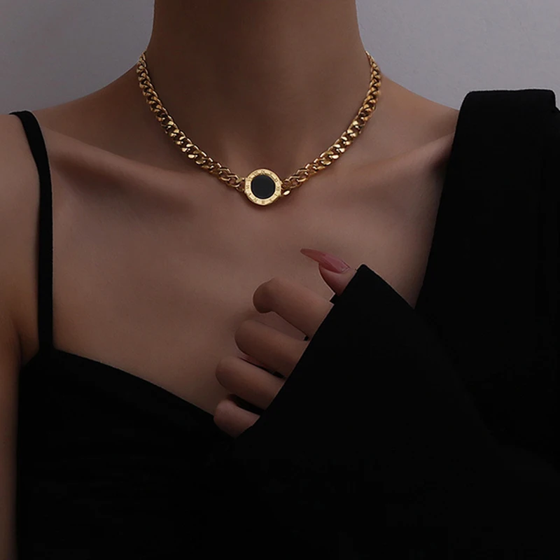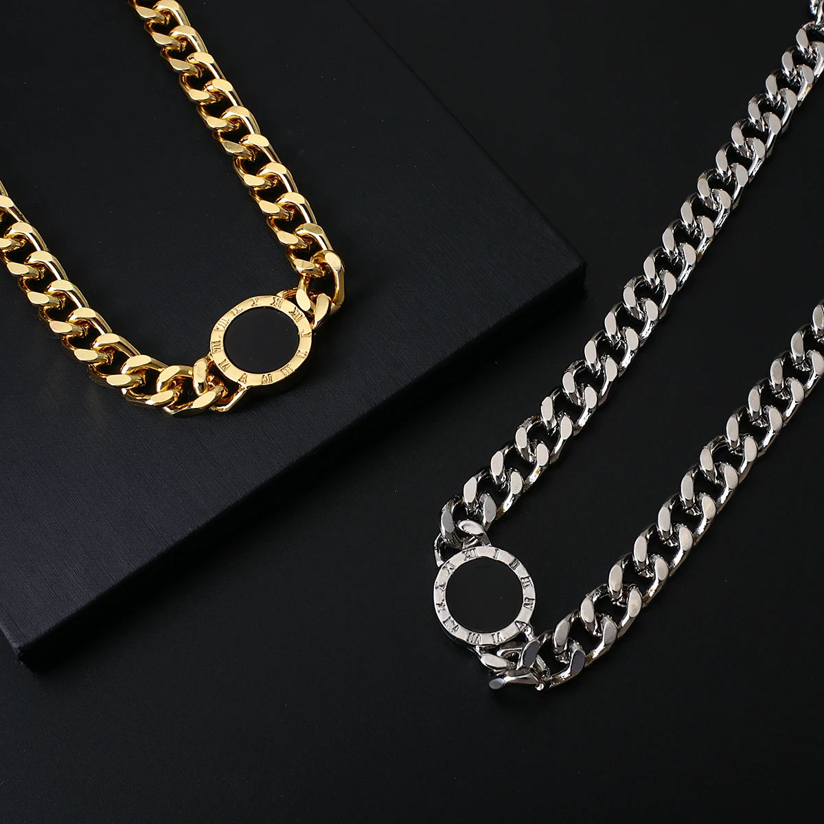 Модное Черное круглое ожерелье Flashbuy с римскими цифрами для женщин и мужчин, толстая цепь золотого и серебряного цвета, яркие ожерелья, ювелирные изделия