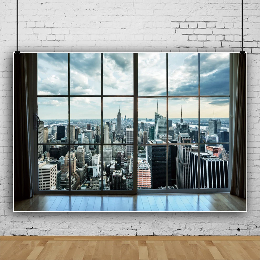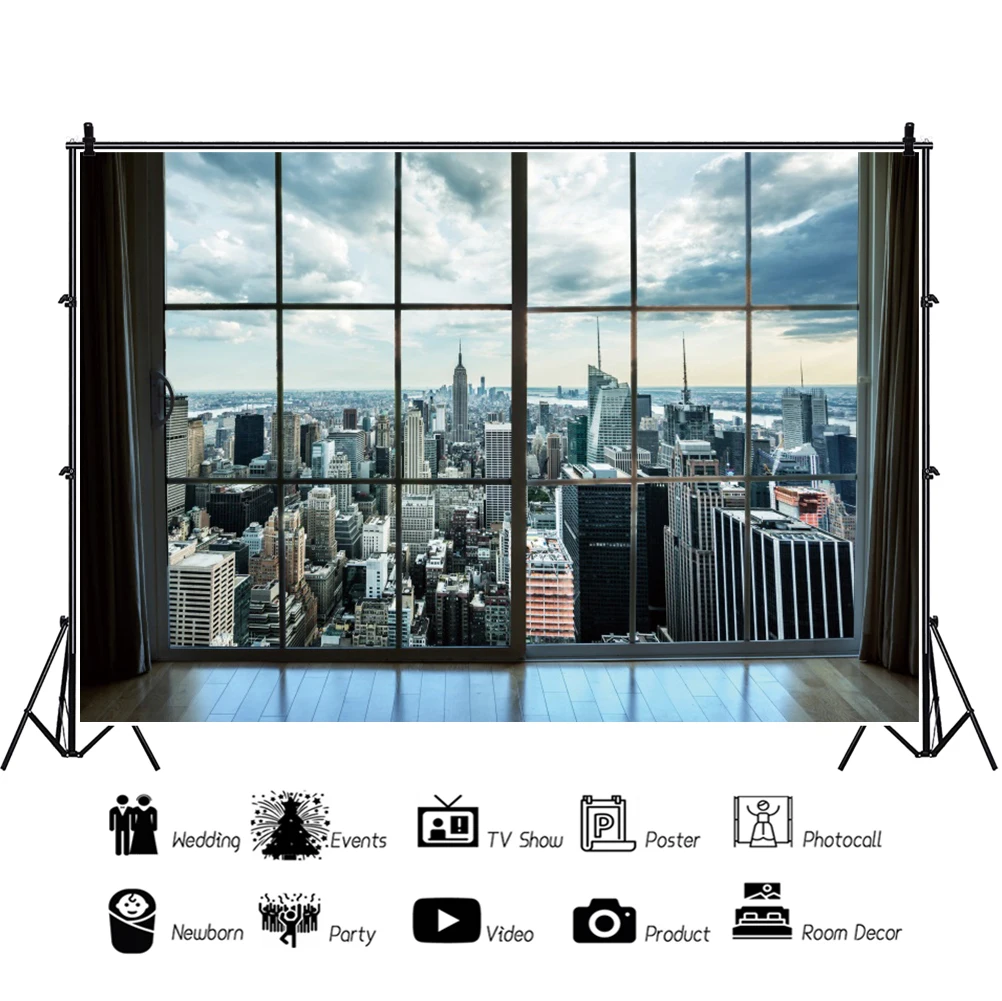 Laeacco городской гостиной, интерьер окна, облачный 3D узор, живописный фотографический телефон