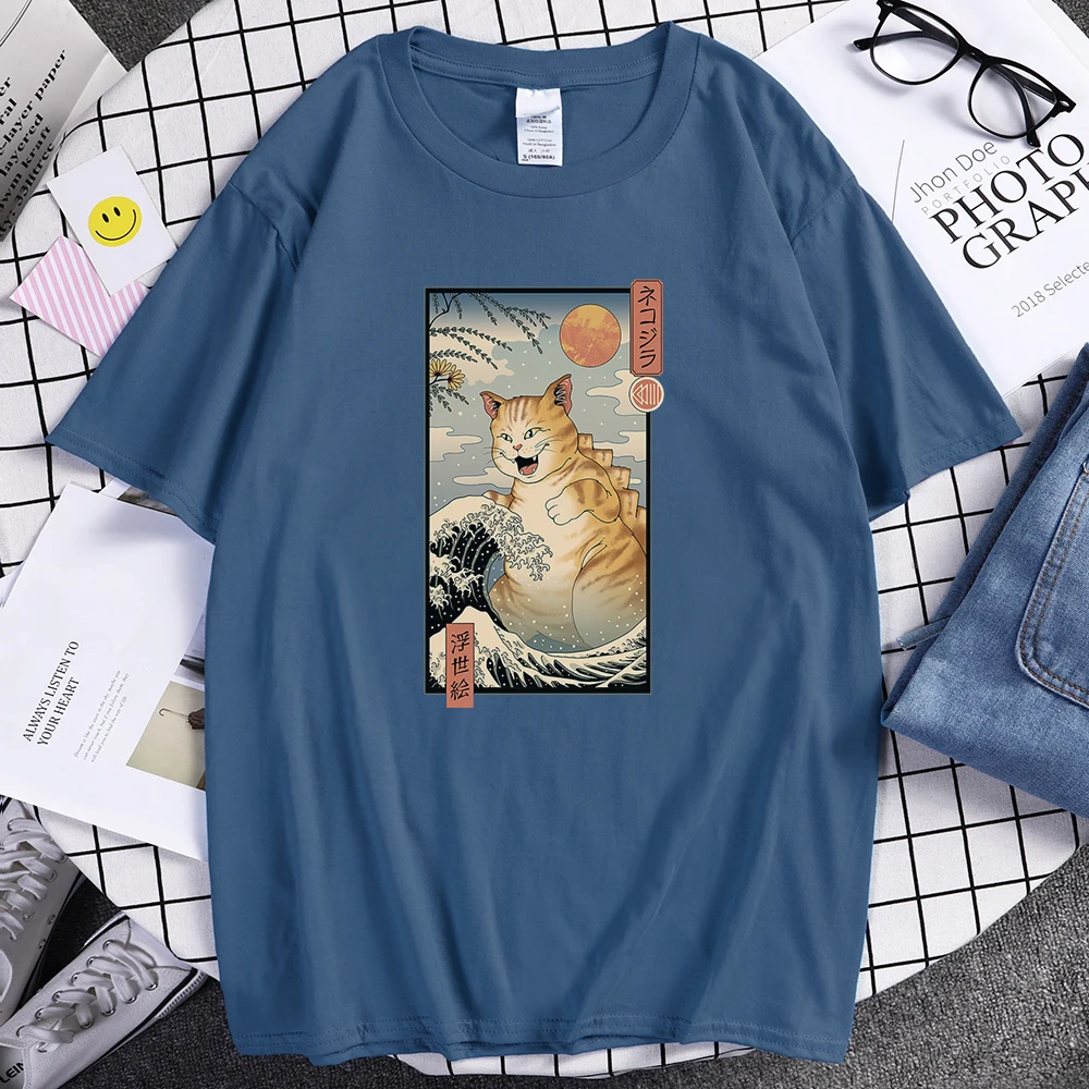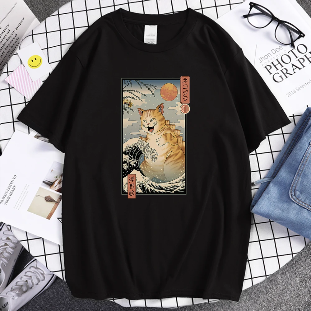 Футболки Ukiyoe с принтом в японском стиле аниме, летние, с коротки...