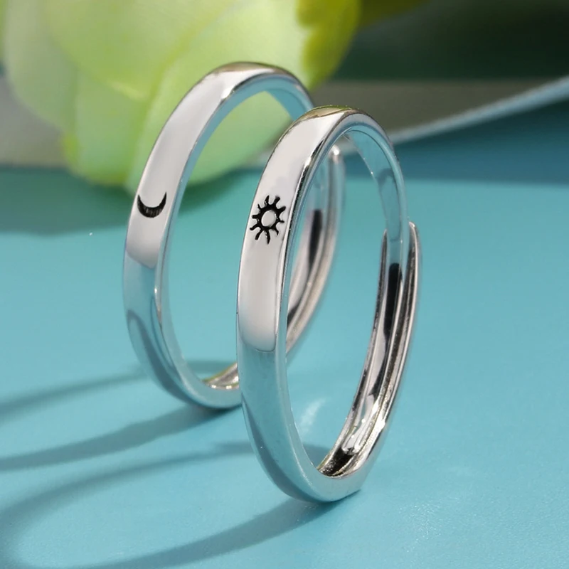 Простое открытое минималистичное серебряное кольцо в виде Солнца и Луны, регулируемое кольцо для мужчин, женщин, мужчин, пары, обручальные мужские ювелирные изделия