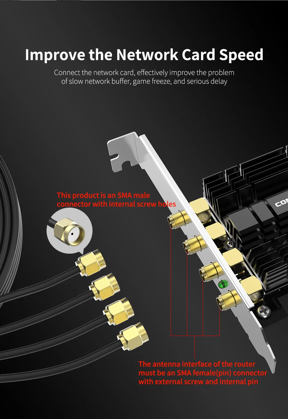 4 * 6dBi 2,4 5,8 ГГц Внешняя антенна кабель приема сигнала для PCIE Настольный Wi-Fi адаптер AX200 карта беспроводной маршрутизатор AP