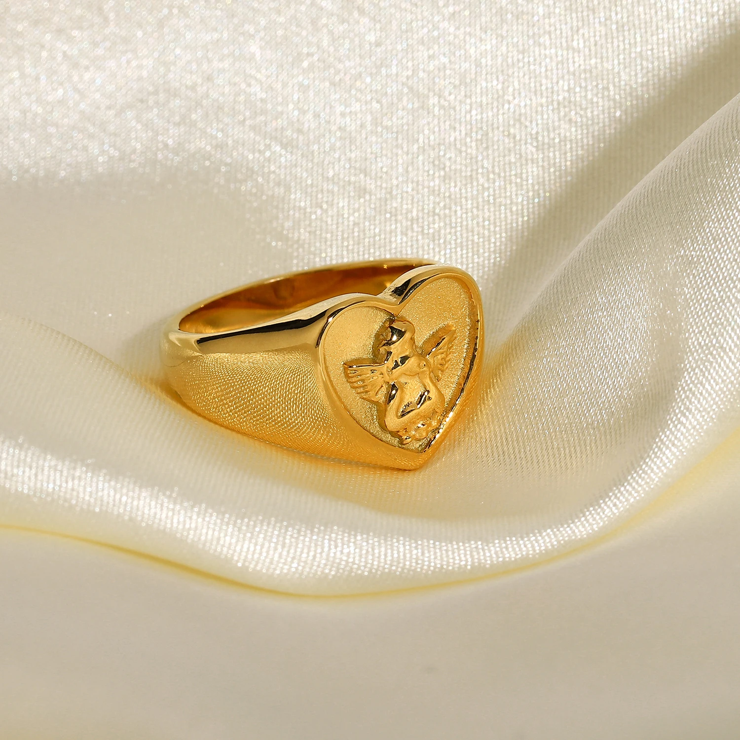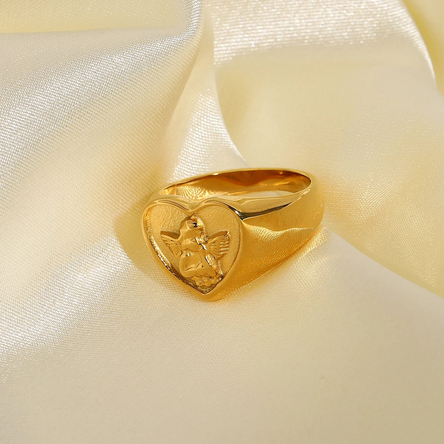 18K позолоченные 316L нержавеющая сталь в форме сердца Ангел кольца...