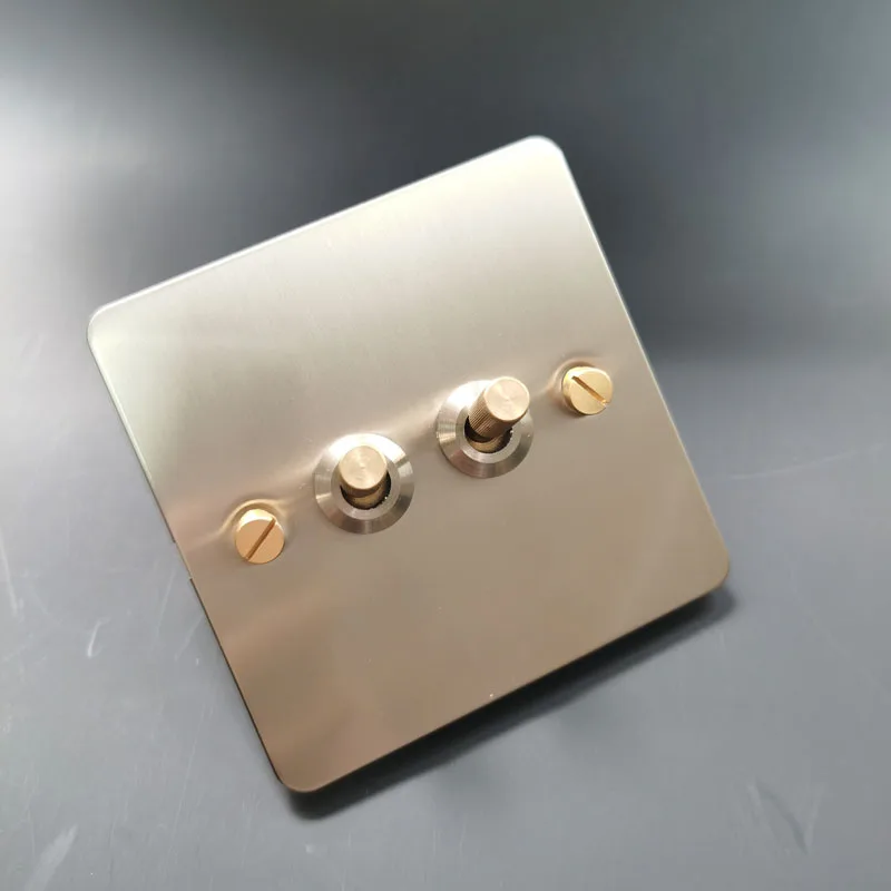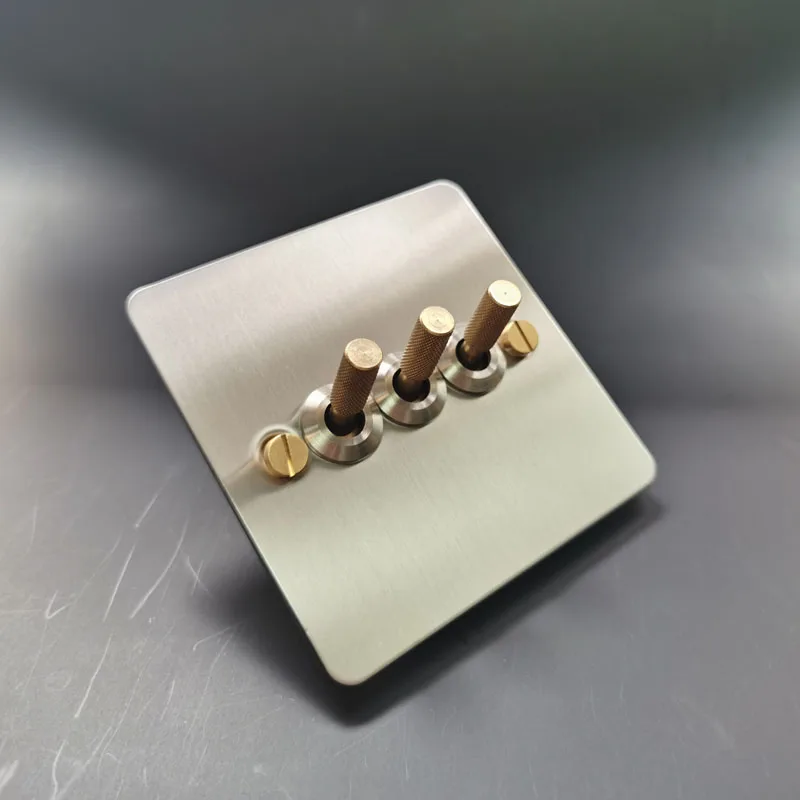 Настенный выключатель света, 1-4 канала, из нержавеющей стали, основная цветная матовая панель, золотой рычаг и винты, розетка европейского стандарта