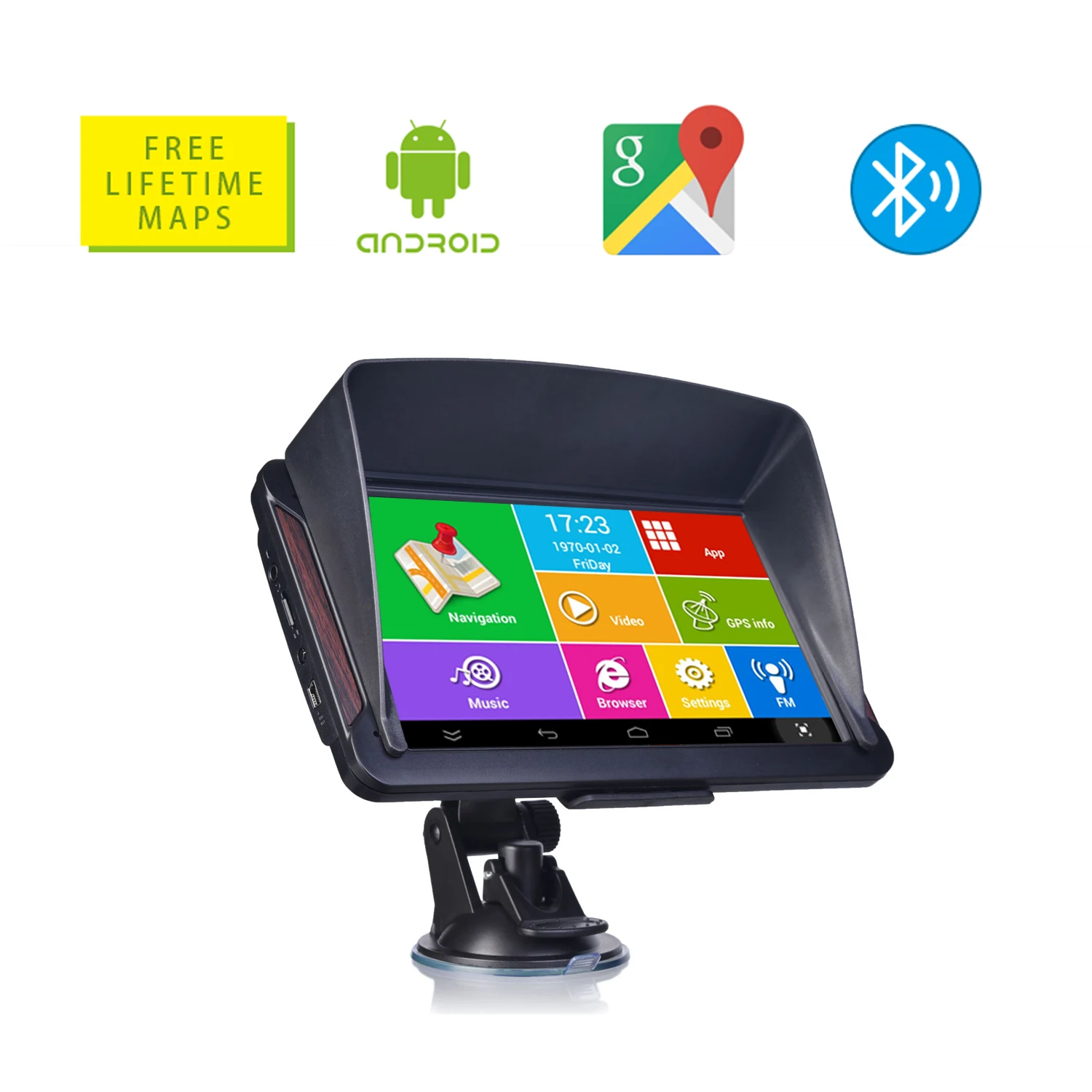 7 "дюймовый Android 8 г или 16GB + RAM512MB автомобиля GPS навигации AV-IN Bluetooth WI-FI FM передатчик Комплект Бесплатные дорожные карты + солнцезащитный козырек