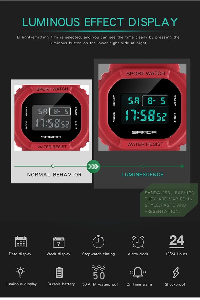 Часы наручные SANDA мужскиеженские электронные с секундомером, 293