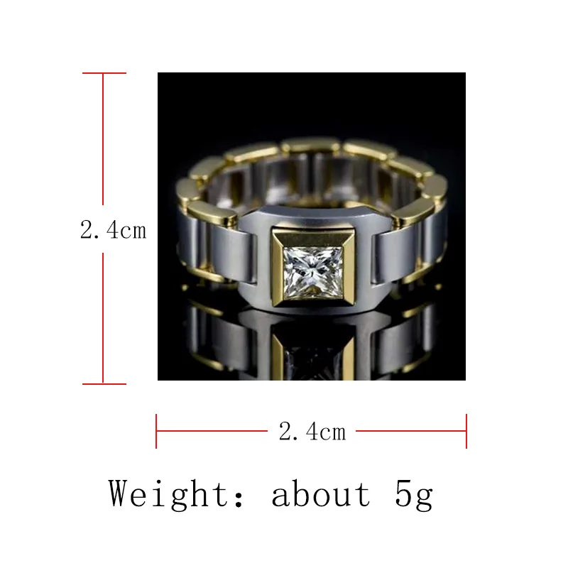 Мужские двухцветные Квадратные Кольца с Белым Круглым цирконием, ви...