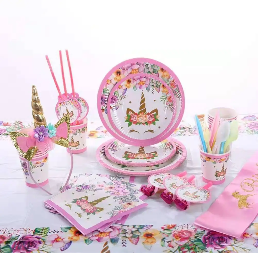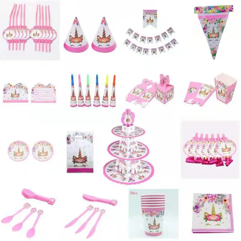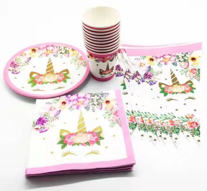 Одноразовая посуда для дня рождения с единорогом, бумажная тарелка, чашка, соломенная салфетка, украшение для дня рождения девочки