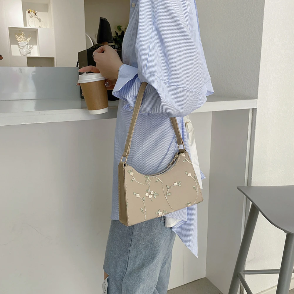 Женская сумка через плечо, из искусственной кожи, с кружевом и цветочной вышивкой, с ручкой сверху, 2021