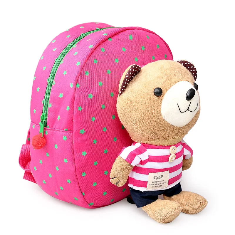 Детские школьные ранцы с медведем, детский рюкзак со съемной куклой, милые рюкзаки, детский подарок для мальчиков и девочек